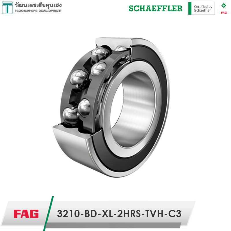 FAG 3210-BD-XL-2HRS-TVH-C3 มีขนาดวงใน 50 มิล วงนอก 90 มิล หนา 30.2 มิล เป็นตลับลูกปืนเม็ดกลมแบบมีมุมสัมผัส 30° องศา แบบสองแถว มีฝายางปิดสองด้าน เหมาะสำหรับรองรับแรงโหลดได้มากทั้งในแนวรัศมีและแนวแกน