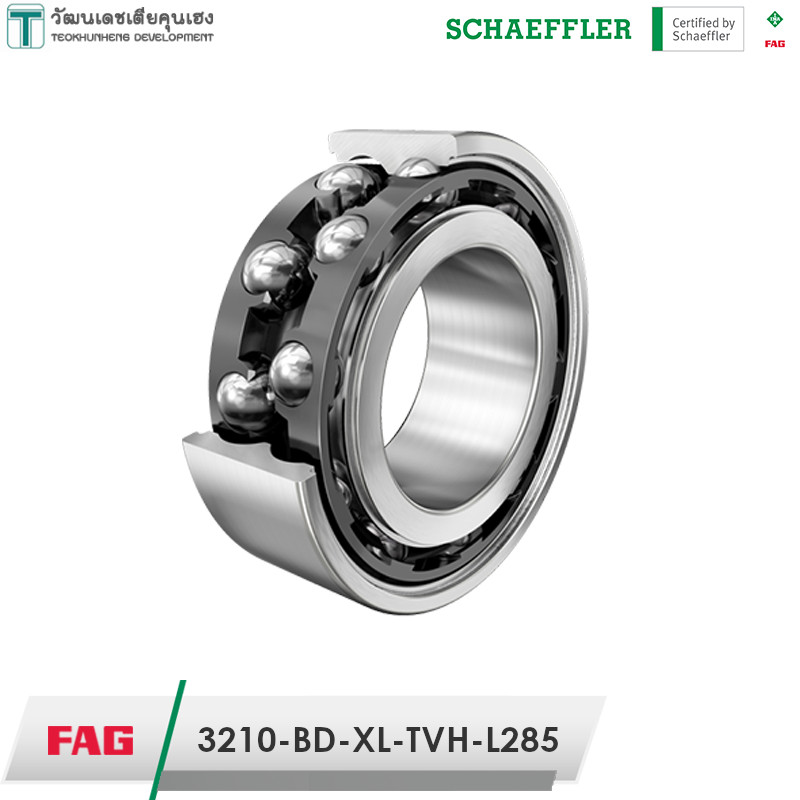 FAG 3210-BD-XL-TVH-L285 มีขนาดวงใน 50 มิล วงนอก 90 มิล หนา 30.2 มิล เป็นตลับลูกปืนเม็ดกลมแบบมีมุมสัมผัส 30° องศา แบบสองแถว เหมาะสำหรับรองรับแรงโหลดได้มากทั้งในแนวรัศมีและแนวแกน