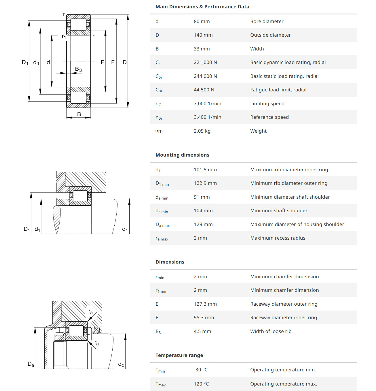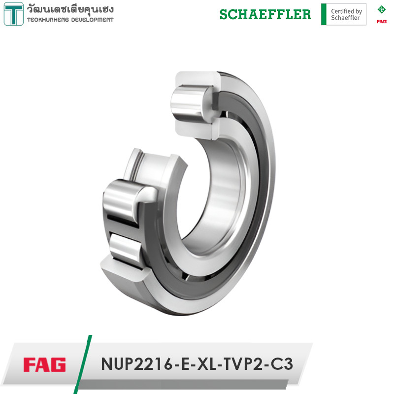 FAG NUP2216-E-XL-TVP2-C3 มีขนาดวงใน 80 มิล วงนอก 140 มิล หนา 333 มิล เป็นตลับลูกปืนเม็ดทรงกระบอก NUP แกนในมีบ่าขึ้นมาหนึ่งด้าน อีกด้านมีแผ่นฝาประกบ ทำให้สะดวกต่อการติดตั้ง รองรับแรงโหลดได้สูงมาก