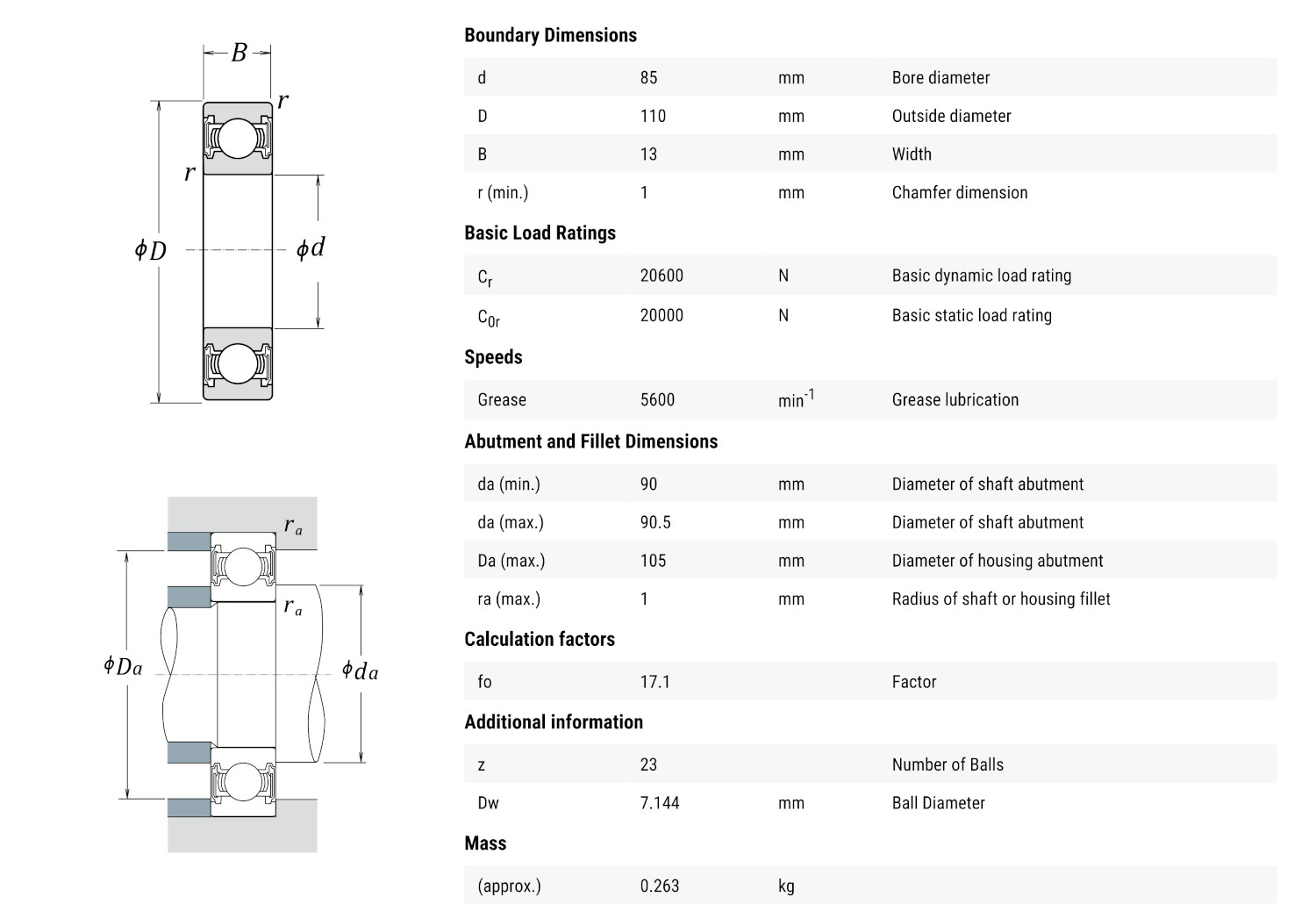 NSK 6817VV มีขนาดวงใน 85 มิล วงนอก 110 มิล หนา 13 มิล เป็นตลับลูกปืนเม็ดกลมร่องลึก ฝายางสองด้าน แถวเดียว มีแรงเสียดทานต่ำ เสียงเงียบ สามารถรองรับความเร็วรอบสูง รองรับแรงทั้งแนวรัศมีและแนวแกน