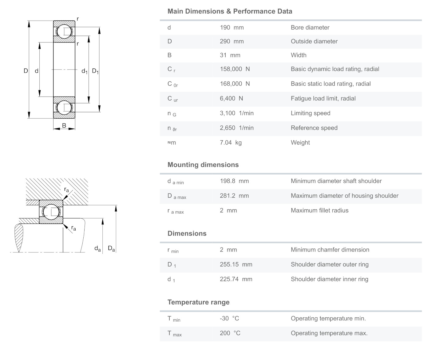 FAG 16038 มีขนาดวงใน 190 มิล วงนอก 290 มิล หนา 31 มิล เป็นตลับลูกปืนเม็ดกลมร่องลึก รังเหล็ก ไม่มีฝา แถวเดียว มีแรงเสียดทานต่ำ เสียงเงียบ สามารถรองรับความเร็วรอบสูง รองรับแรงทั้งแนวรัศมีและแนวแกน