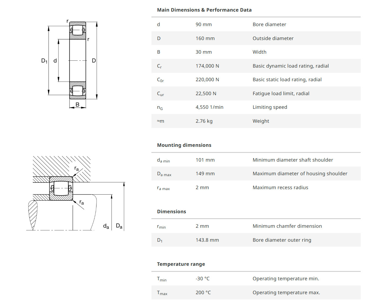 FAG 20218-MB มีขนาดวงใน 90 มิล วงนอก 160 มิล หนา 30 มิล เป็นตลับลูกปืนเม็ดโค้งแถวเดียว แบบให้ตัวได้ แกนในรูตรง รังทองเหลือง เหมาะสำหรับงานที่มี misalignment สามารถรองรับแรงโหลดสูงในแนวรัศมี