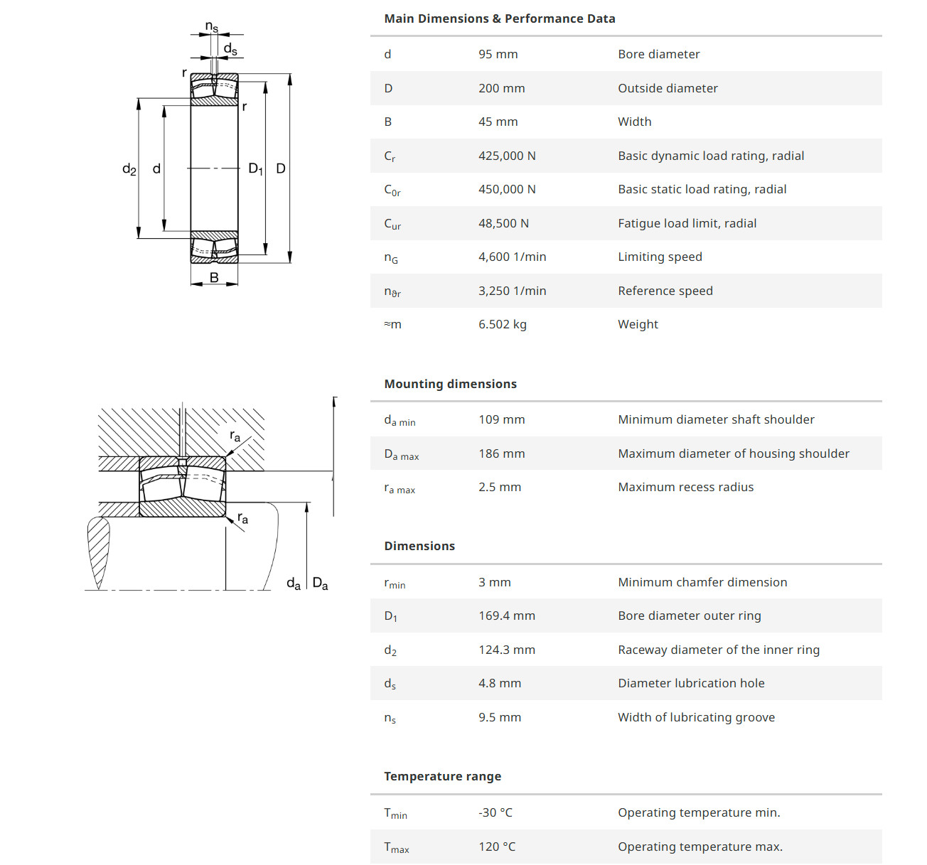FAG 21319-E1-XL-TVPB มีขนาดวงใน 95 มิล วงนอก 200 มิล หนา 45 มิล เป็นตลับลูกปืนเม็ดโค้งสองแถวแบบให้ตัวได้ เป็นลูกปืนแกนในรูตรง มีรูสำหรับเติมจารบีได้ สามารถรองรับแรงโหลดสูงทั้งในแนวรัศมีและแนวแกน