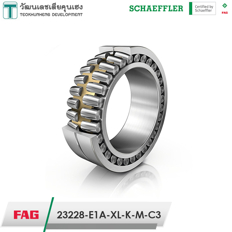 FAG 23228-E1A-XL-K-M-C3 มีขนาดวงใน 140 มิล วงนอก 250 มิล หนา 88 มิล เป็นตลับลูกปืนเม็ดโค้งสองแถวแบบให้ตัวได้ เป็นลูกปืนแกนในรูเฉียง มีรูสำหรับเติมจารบีได้ สามารถรองรับแรงโหลดสูงทั้งในแนวรัศมีและแนวแกน มักใช้ในลิฟท์, อุตสาหกรรมทอผ้า, อุตสาหกรรมแปรรูปอาหาร, เครน เป็นต้น