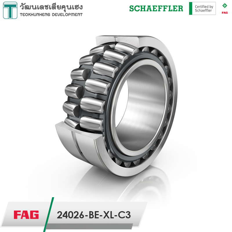 FAG 24026-BE-XL-C3 มีขนาดวงใน 130 มิล วงนอก 200 มิล หนา 69 มิล เป็นตลับลูกปืนเม็ดโค้งสองแถวแบบให้ตัวได้ เป็นลูกปืนแกนในรูตรง มีรูสำหรับเติมจารบีได้ สามารถรองรับแรงโหลดสูงทั้งในแนวรัศมีและแนวแกน
