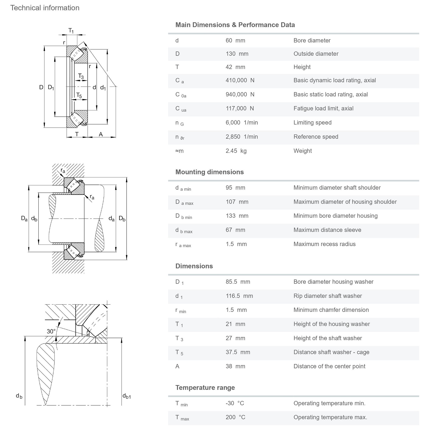 FAG 29412-E1-XL มีขนาดวงใน 60 มิล วงนอก 130 มิล หนา 42 มิล เป็นตลับลูกปืนกันรุนเม็ดโค้ง แถวเดียว เหมาะสำหรับการรองรับแรงในแนวรัศมีพร้อมๆ กับแรงกระทำในแนวแกน สามารถรองรับโหลดได้สูงมาก ทนทาน เหมาะสำหรับงานอุตสาหกรรมหนัก ตลับลูกปืนประเภทนี้มักพบได้ในเกียร์ เครื่องยนต์เดินเรือ เครื่องจักรก่อสร้าง เครื่องรีดโลหะ