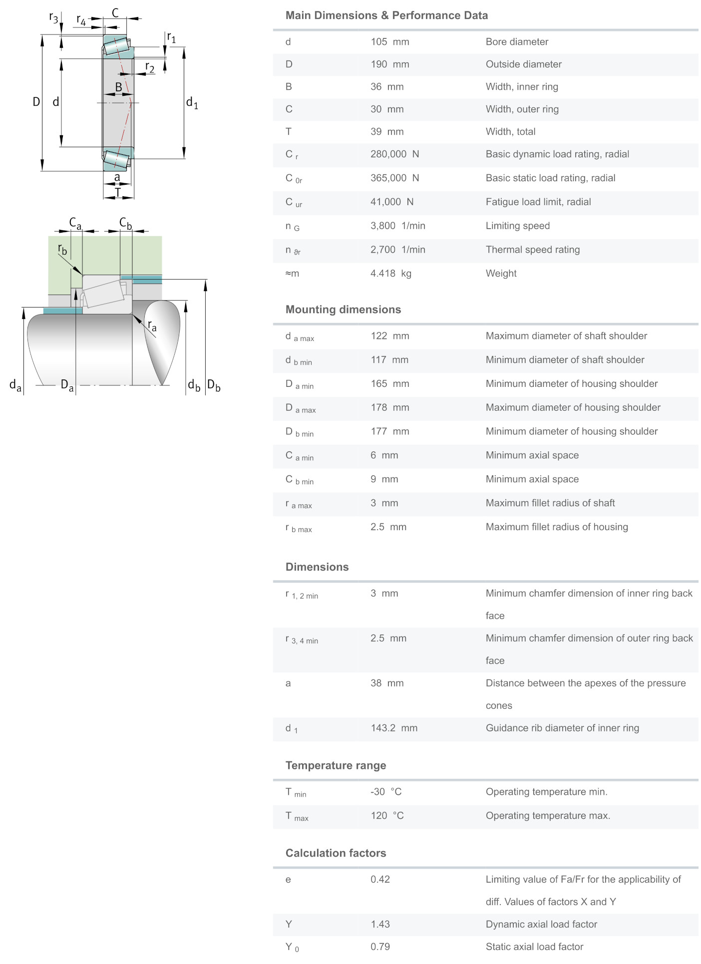 FAG 30221-A มีขนาดวงใน 105 มิล วงนอก 190 มิล หนารวม 39 มิล เป็นตลับลูกปืนเม็ดเรียว หรือที่เรียกว่า เตเปอร์ (Tapered) แกนนอกมีลักษณะเป็นปลอกคล้ายถ้วย (Cup) แยกออกจากตัวลูกปืน(Cone)ได้ ทำให้สะดวกต่อการติดตั้ง สามารถรองรับแรงโหลดได้สูงทั้งแนวรัศมีและแนวแกน