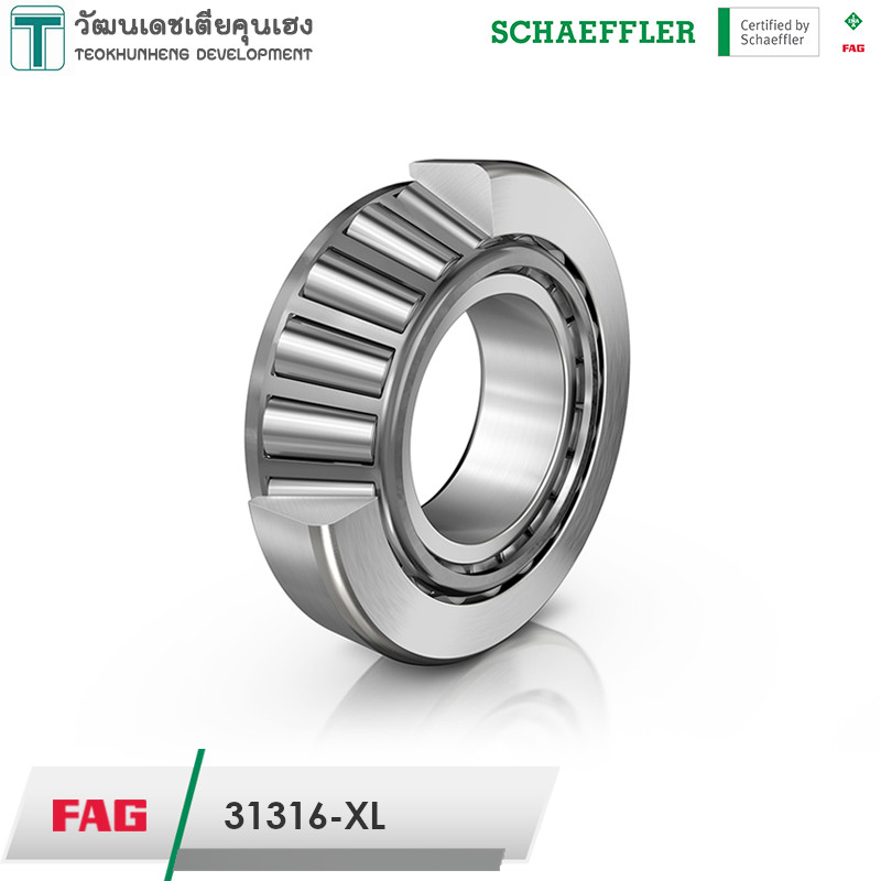FAG 31316-XL มีขนาดวงใน 80 มิล วงนอก 170 มิล หนารวม 42.5 มิล เป็นตลับลูกปืนเม็ดเรียว หรือที่เรียกว่า เตเปอร์ (Tapered) แกนนอกมีลักษณะเป็นปลอกคล้ายถ้วย (Cup) แยกออกจากตัวลูกปืน(Cone)ได้ ทำให้สะดวกต่อการติดตั้ง สามารถรองรับแรงโหลดได้สูงทั้งแนวรัศมีและแนวแกน