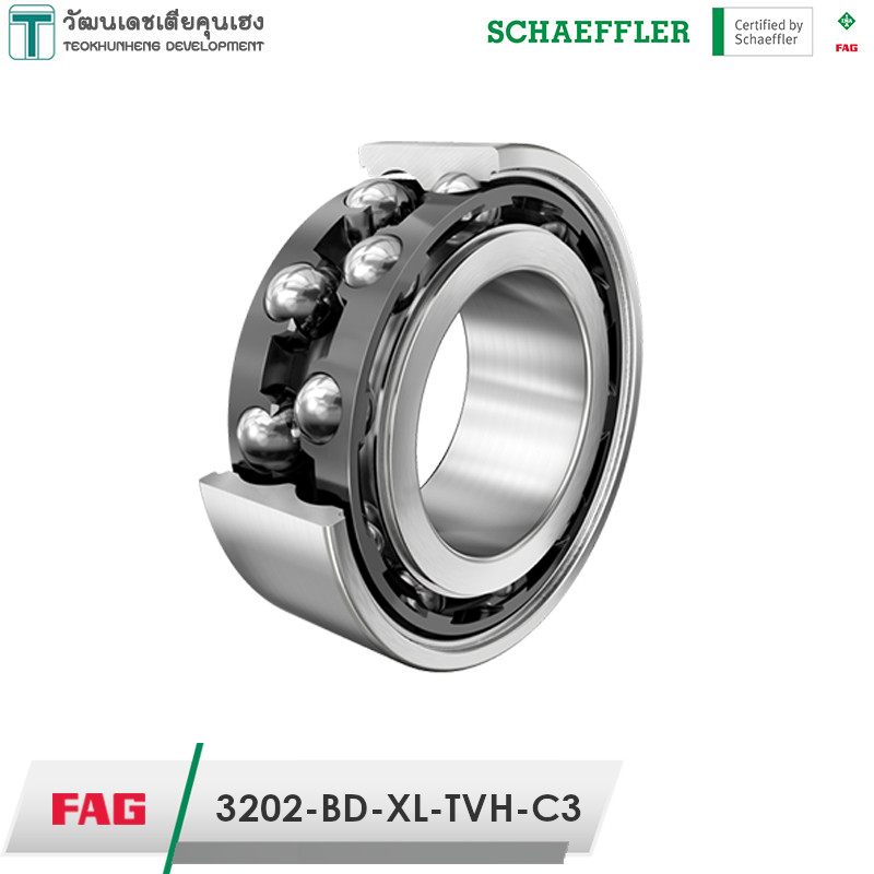 FAG 3202-BD-XL-TVH-C3 มีขนาดวงใน 15 มิล วงนอก 35 มิล หนา 15.9 มิล เป็นตลับลูกปืนเม็ดกลมแบบมีมุมสัมผัส 30° องศา แบบสองแถว เหมาะสำหรับรองรับแรงโหลดได้มากทั้งในแนวรัศมีและแนวแกน