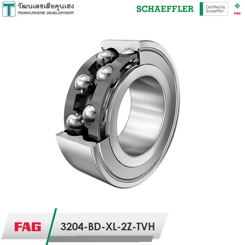 FAG 3204-BD-XL-2Z-TVH มีขนาดวงใน 20 มิล วงนอก 47 มิล หนา 20.6 มิล เป็นตลับลูกปืนเม็ดกลมแบบมีมุมสัมผัส 30° องศา แบบสองแถว ฝาเหล็กสองด้าน เหมาะสำหรับรองรับแรงโหลดได้มากทั้งในแนวรัศมีและแนวแกน