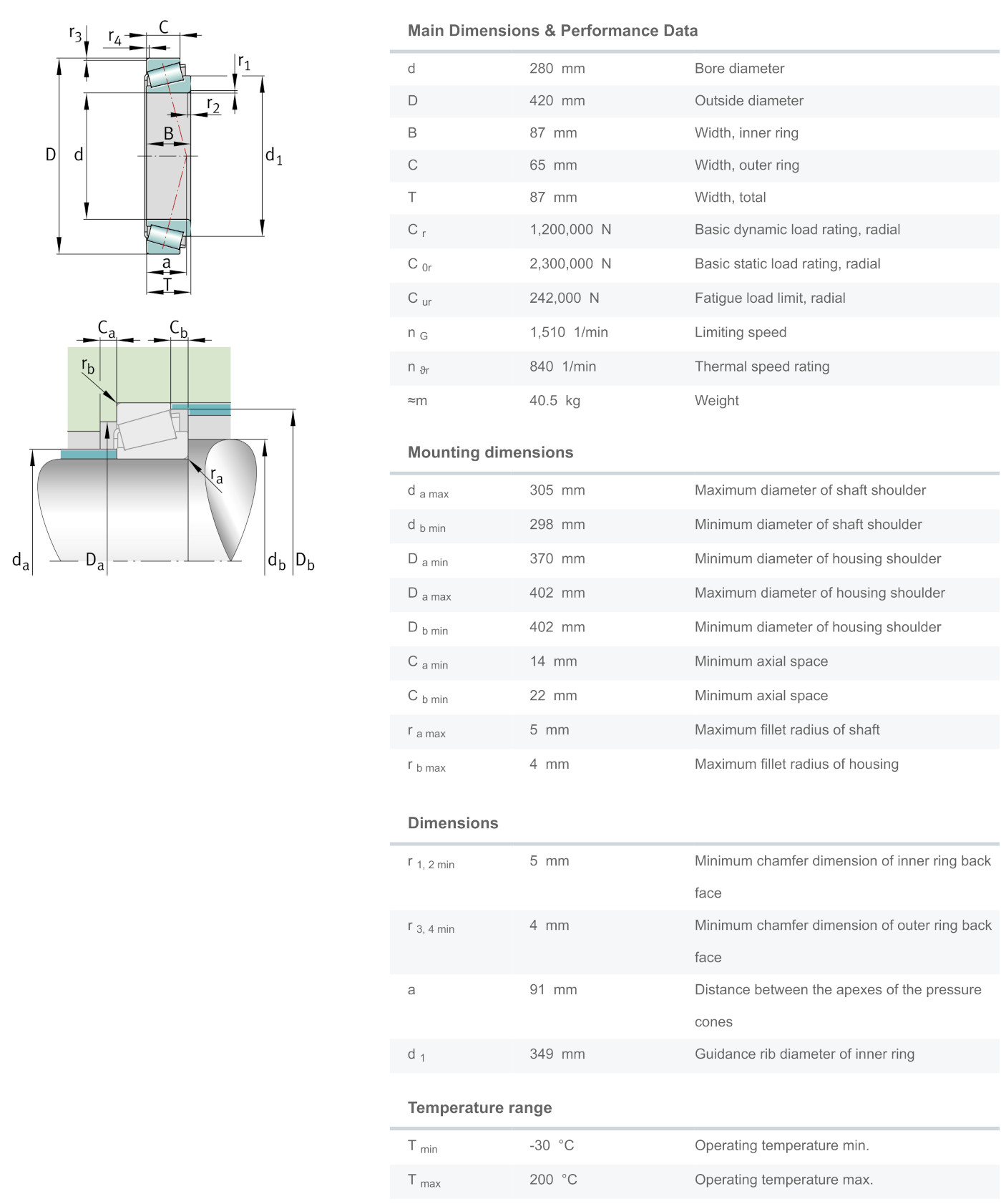 FAG 32056-X มีขนาดวงใน 280 มิล วงนอก 420 มิล หนารวม 87 มิล เป็นตลับลูกปืนเม็ดเรียว หรือที่เรียกว่า เตเปอร์ (Tapered) แกนนอกมีลักษณะเป็นปลอกคล้ายถ้วย (Cup) แยกออกจากตัวลูกปืน(Cone)ได้ ทำให้สะดวกต่อการติดตั้ง สามารถรองรับแรงโหลดได้สูงทั้งแนวรัศมีและแนวแกน