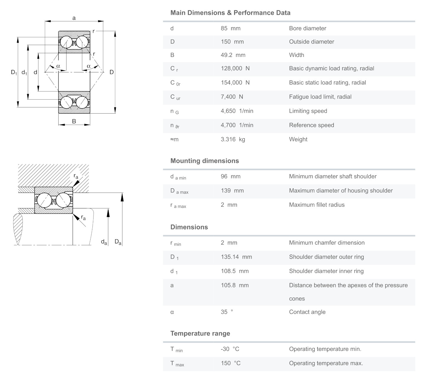 FAG 3217-C3 มีขนาดวงใน 110 มิล วงนอก 200 มิล หนา 69.8 มิล เป็นตลับลูกปืนเม็ดกลมแบบมีมุมสัมผัส 30° องศา แบบสองแถว เหมาะสำหรับรองรับแรงโหลดได้มากทั้งในแนวรัศมีและแนวแกน