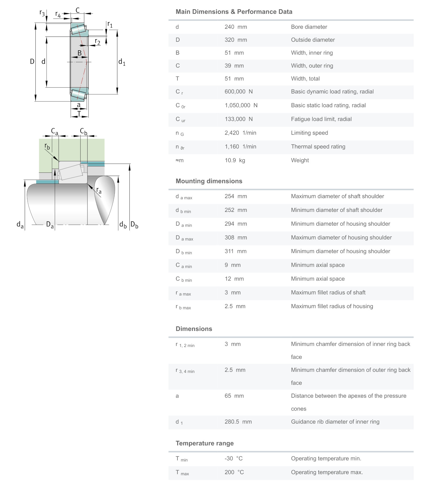 FAG 32948 มีขนาดวงใน 240 มิล วงนอก 320 มิล หนารวม 51 มิล เป็นตลับลูกปืนเม็ดเรียว หรือที่เรียกว่า เตเปอร์ (Tapered) แกนนอกมีลักษณะเป็นปลอกคล้ายถ้วย (Cup) แยกออกจากตัวลูกปืน(Cone)ได้ ทำให้สะดวกต่อการติดตั้ง สามารถรองรับแรงโหลดได้สูงทั้งแนวรัศมีและแนวแกน