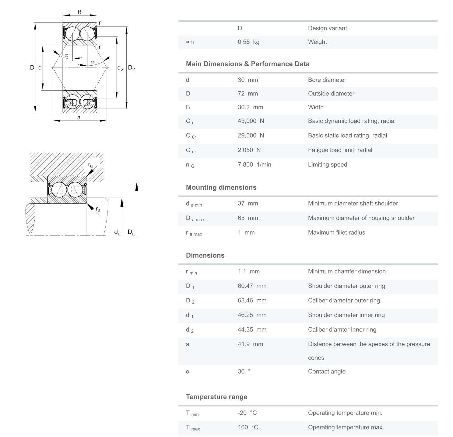 FAG 3306-BD-2Z-TVH มีขนาดวงใน 30 มิล วงนอก 72 มิล หนา 30.2 มิล เป็นตลับลูกปืนเม็ดกลมแบบมีมุมสัมผัส 30° องศา แบบสองแถว ฝาเหล็กสองด้าน เหมาะสำหรับรองรับแรงโหลดได้มากทั้งในแนวรัศมีและแนวแกน