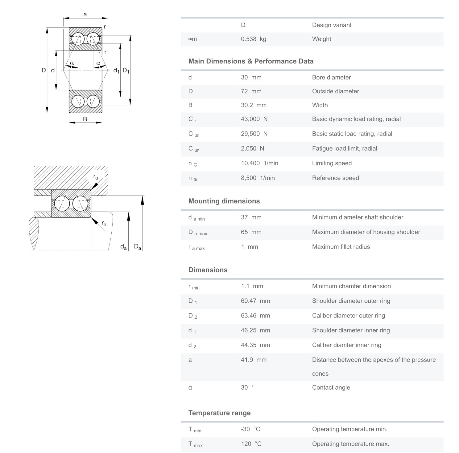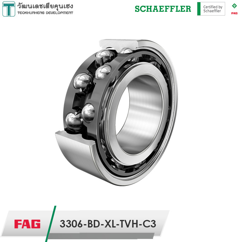 FAG 3306-BD-XL-TVH-C3 มีขนาดวงใน 30 มิล วงนอก 72 มิล หนา 30.2 มิล เป็นตลับลูกปืนเม็ดกลมแบบมีมุมสัมผัส 30° องศา แบบสองแถว เหมาะสำหรับรองรับแรงโหลดได้มากทั้งในแนวรัศมีและแนวแกน