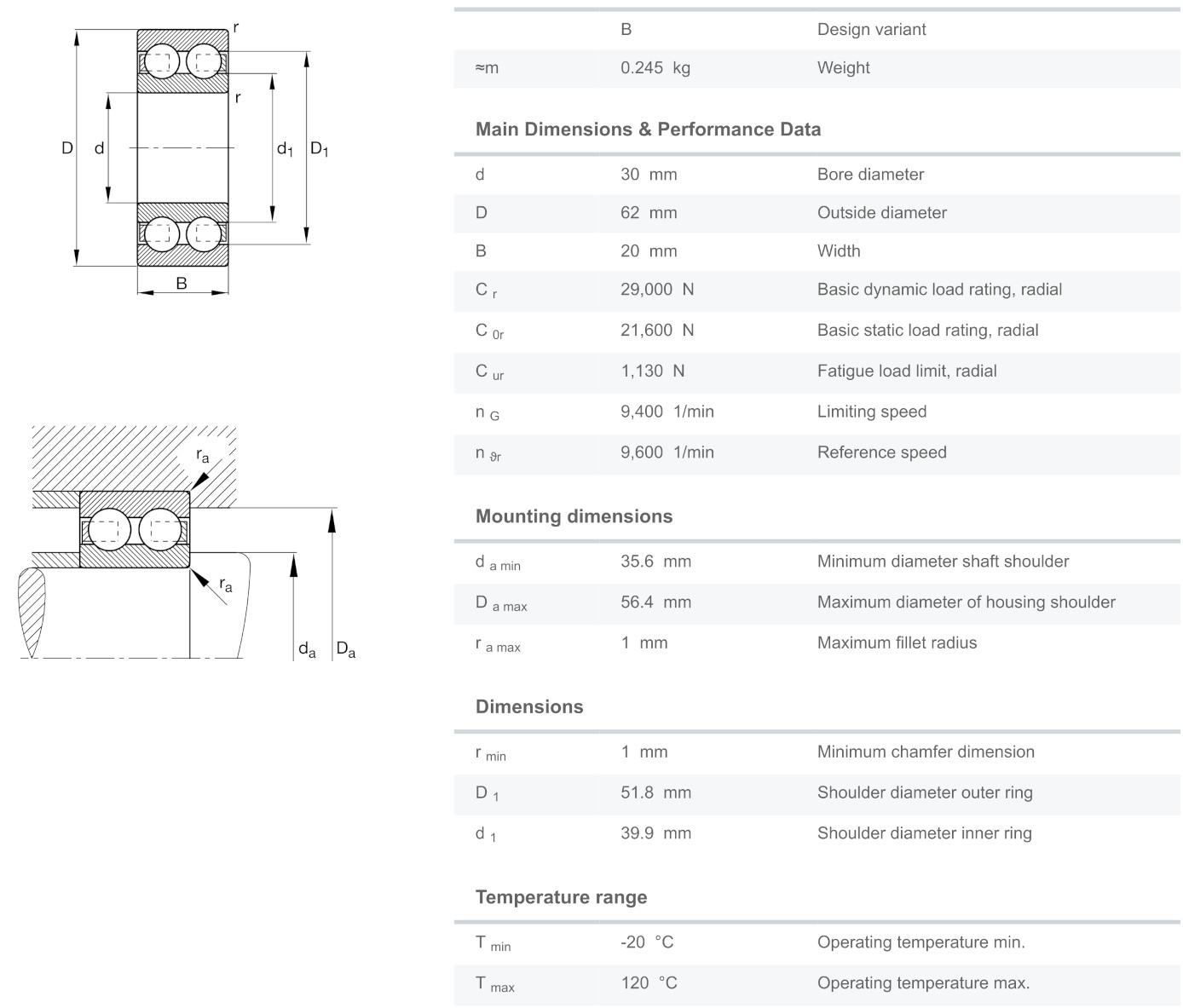 FAG 4206-BB-TVH มีขนาดวงใน 30 มิล วงนอก 62 มิล หนา 20 มิล เป็นตลับลูกปืนเม็ดกลมร่องลึกสองแถว รังโพลีอาไมด์ ไม่มีฝา มีแรงเสียดทานต่ำ เสียงเงียบ สามารถรองรับความเร็วรอบสูง รองรับแรงทั้งแนวรัศมีและแนวแกน