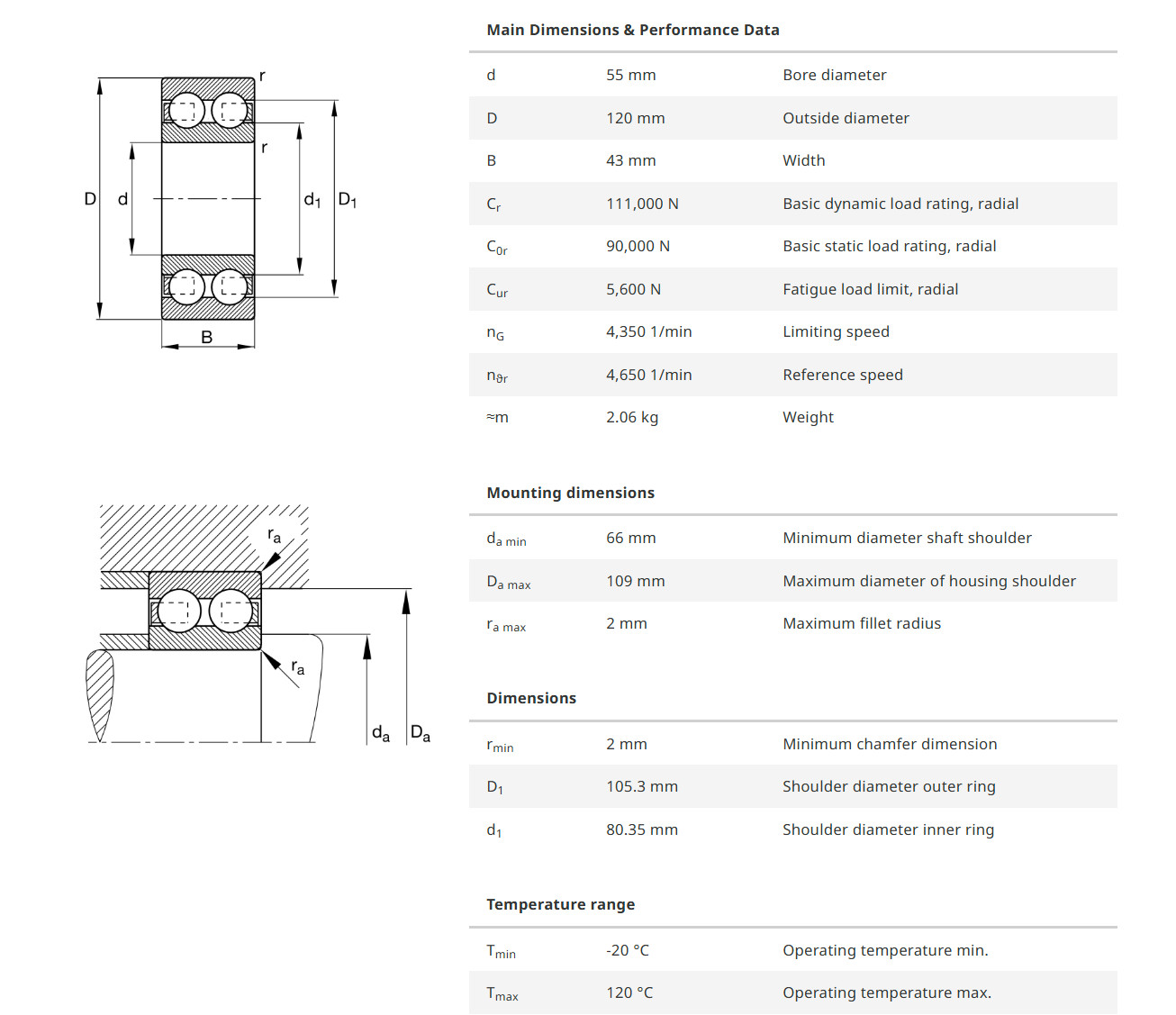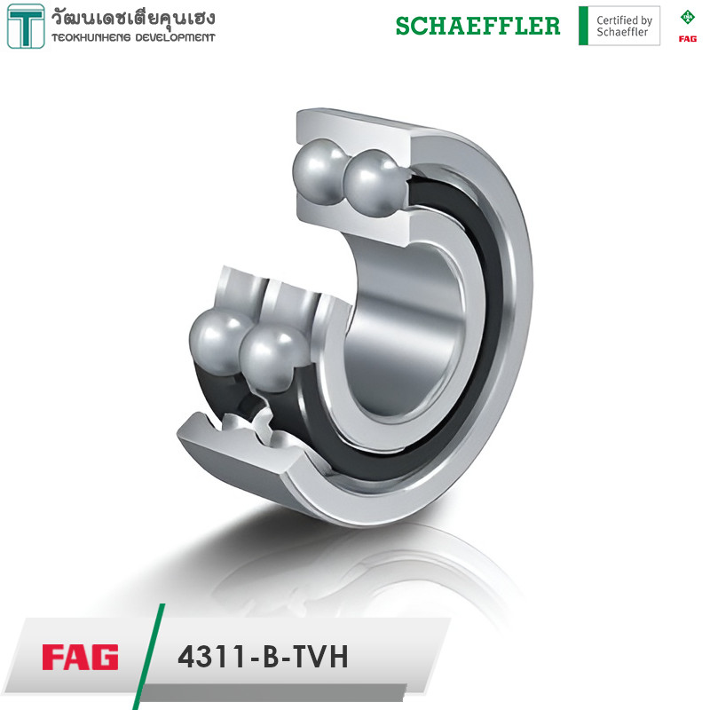 FAG 4311-B-TVH มีขนาดวงใน 55 มิล วงนอก 120 มิล หนา 43 มิล เป็นตลับลูกปืนเม็ดกลมร่องลึกสองแถว รังโพลีอาไมด์ ไม่มีฝา มีแรงเสียดทานต่ำ เสียงเงียบ สามารถรองรับความเร็วรอบสูง รองรับแรงทั้งแนวรัศมีและแนวแกน