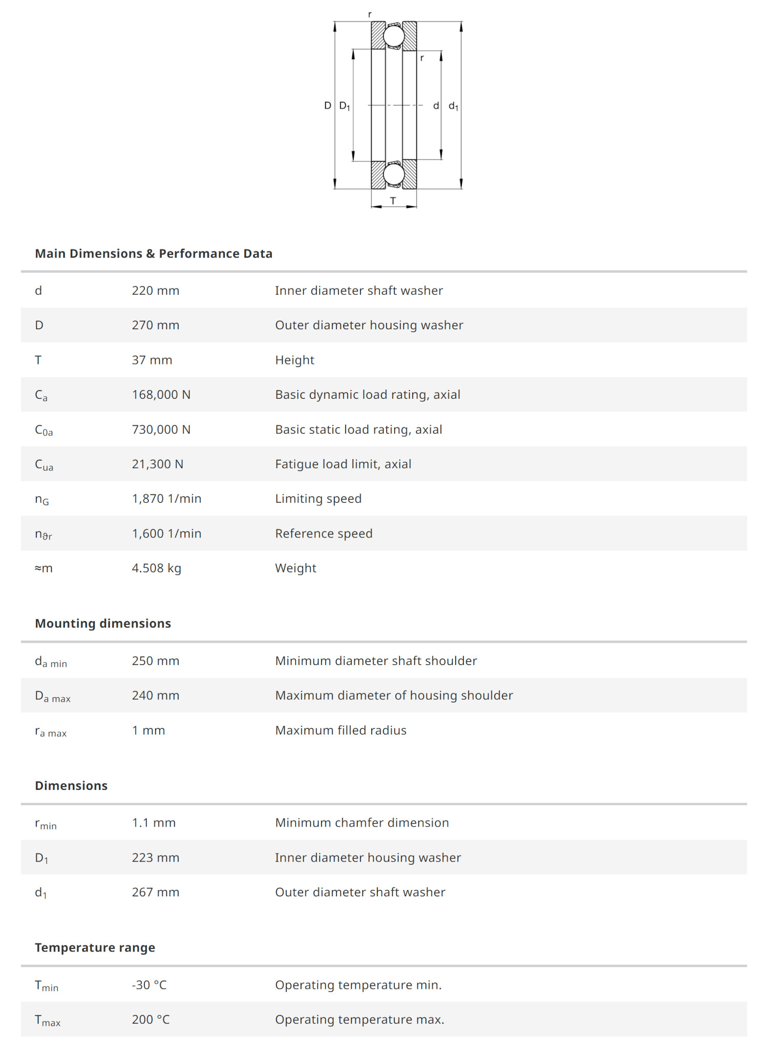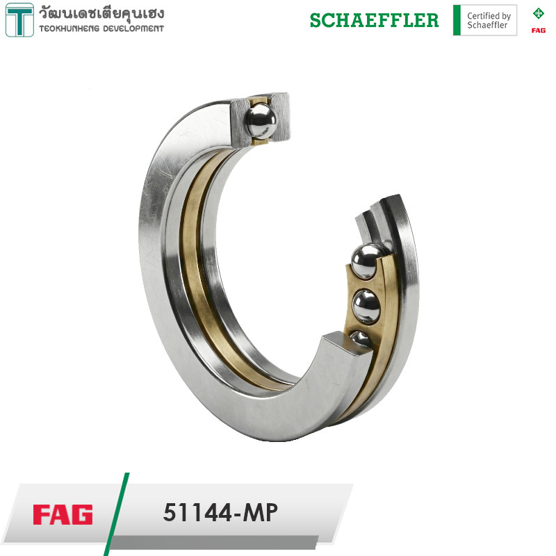 FAG 51144-MP มีขนาดวงใน 220 มิล วงนอก 270 มิล หนารวม 37 มิล เป็นตลับลูกปืนกันรุนเม็ดกลม รังทองเหลือง มีฝาประกบ 2 ด้าน ที่สามารถแยกถอดประกอบได้ ทำให้สะดวกต่อการติดตั้ง สามารถรองรับแรงโหลดได้สูงในแนวแกน