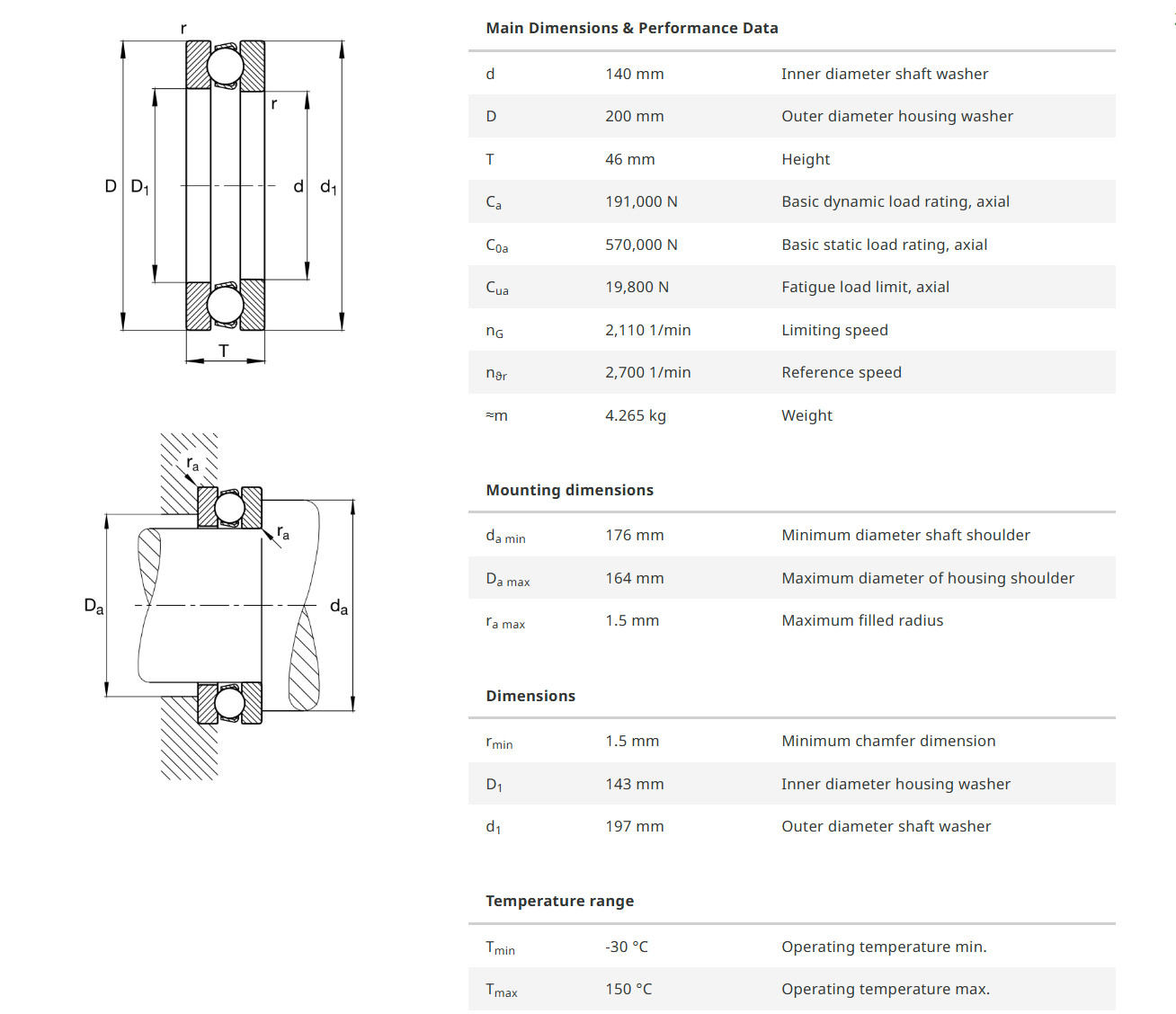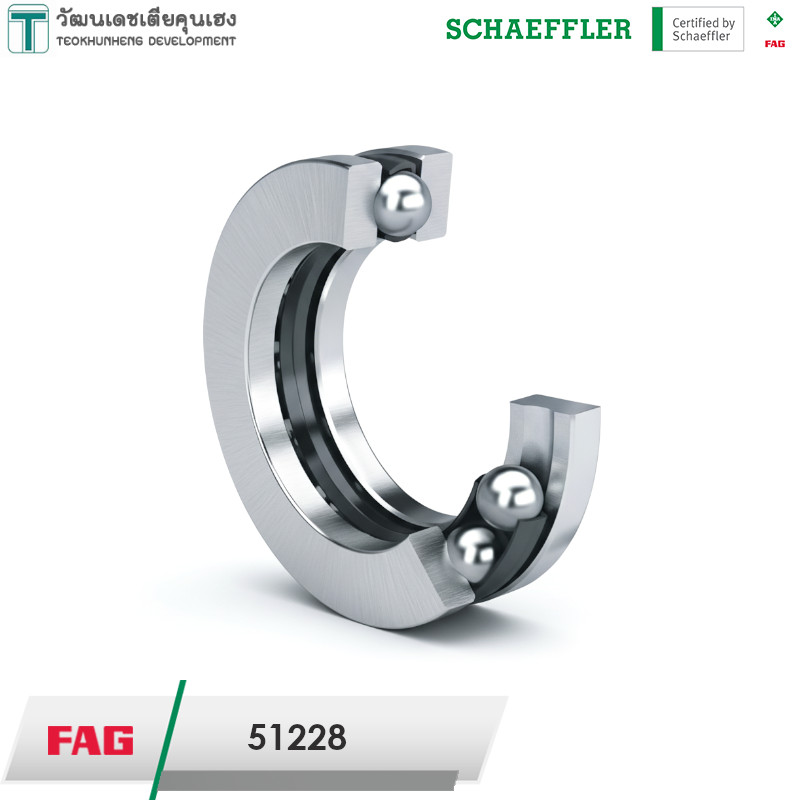 FAG 51228 มีขนาดวงใน 140 มิล วงนอก 200 มิล หนารวม 46 มิล เป็นตลับลูกปืนกันรุนเม็ดกลม รังเหล็ก มีฝาประกบ 2 ด้าน ที่สามารถแยกถอดประกอบได้ ทำให้สะดวกต่อการติดตั้ง สามารถรองรับแรงโหลดได้สูงในแนวแกน