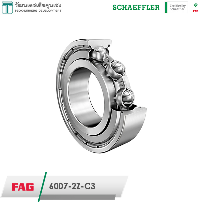 FAG 6007-2Z-C3 มีขนาดวงใน 35 มิล วงนอก 62 มิล หนา 14 มิล เป็นตลับลูกปืนเม็ดกลมร่องลึก ฝาเหล็กสองด้าน แถวเดียว มีแรงเสียดทานต่ำ เสียงเงียบ สามารถรองรับความเร็วรอบสูง รองรับแรงทั้งแนวรัศมีและแนวแกน