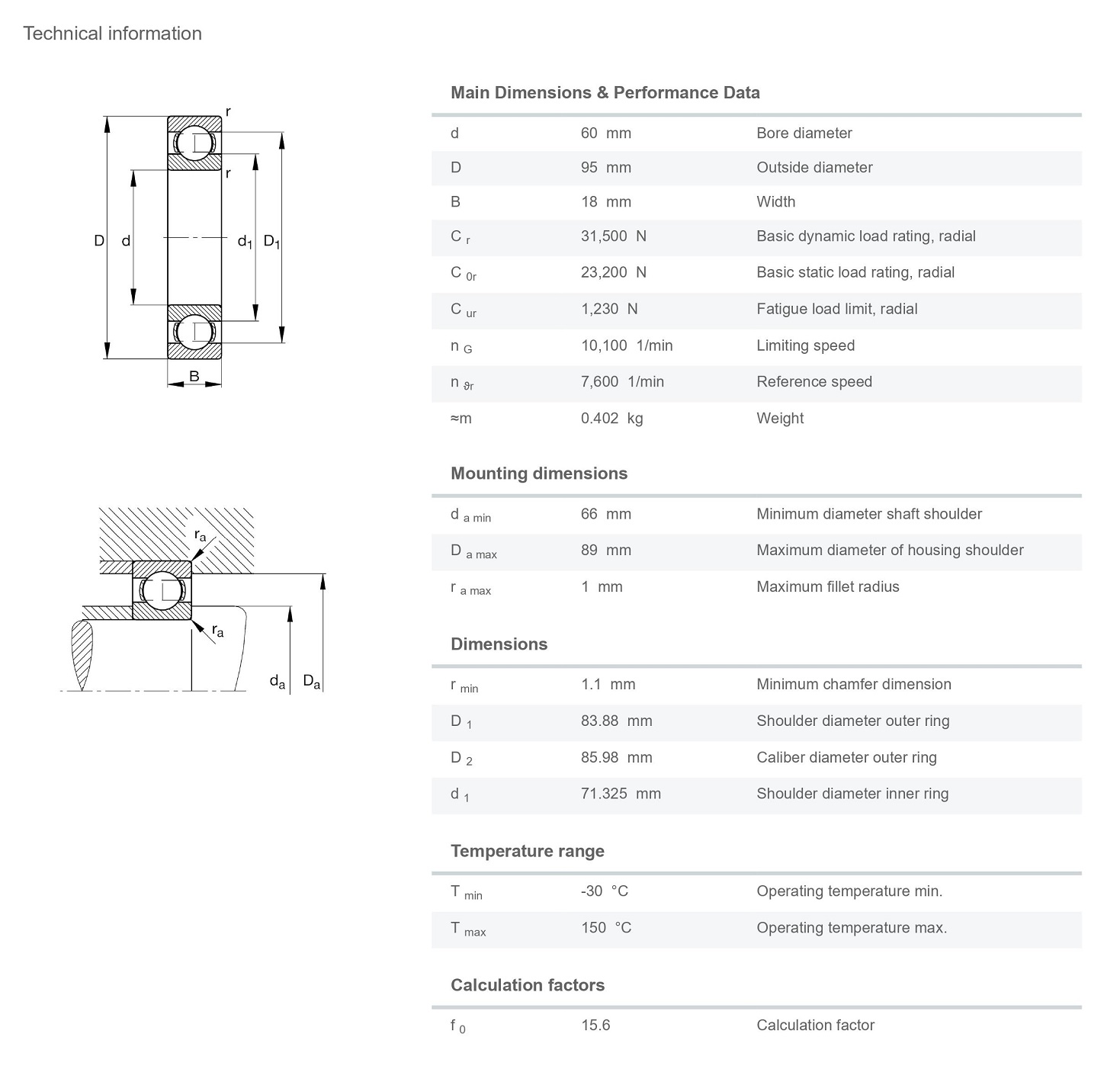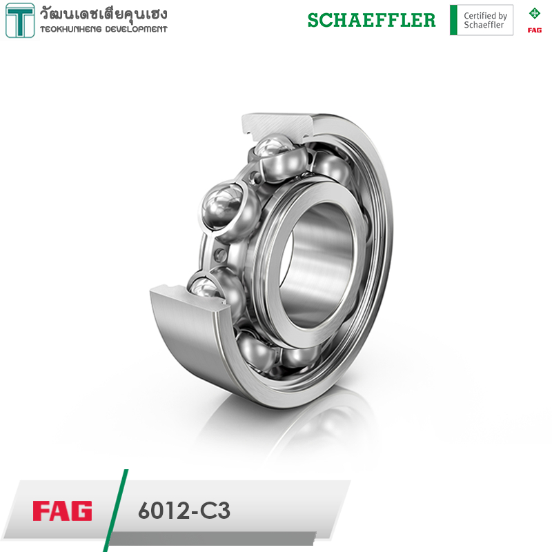 FAG 6012-C3 มีขนาดวงใน 60 มิล วงนอก 95 มิล หนา 18 มิล เป็นตลับลูกปืนเม็ดกลมร่องลึก ไม่มีฝาปิด แถวเดียว รังเหล็ก มีแรงเสียดทานต่ำ เสียงเงียบ สามารถรองรับความเร็วรอบสูง รองรับแรงทั้งแนวรัศมีและแนวแกน