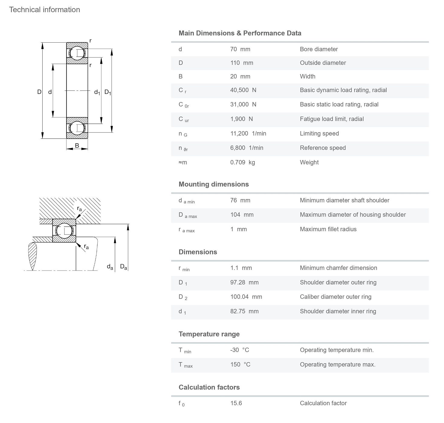 FAG 6014-M มีขนาดวงใน 70 มิล วงนอก 110 มิล หนา 20 มิล เป็นตลับลูกปืนเม็ดกลมร่องลึก แถวเดียว รังทองเหลือง มีแรงเสียดทานต่ำ เสียงเงียบ สามารถรองรับความเร็วรอบสูง รองรับแรงทั้งแนวรัศมีและแนวแกน