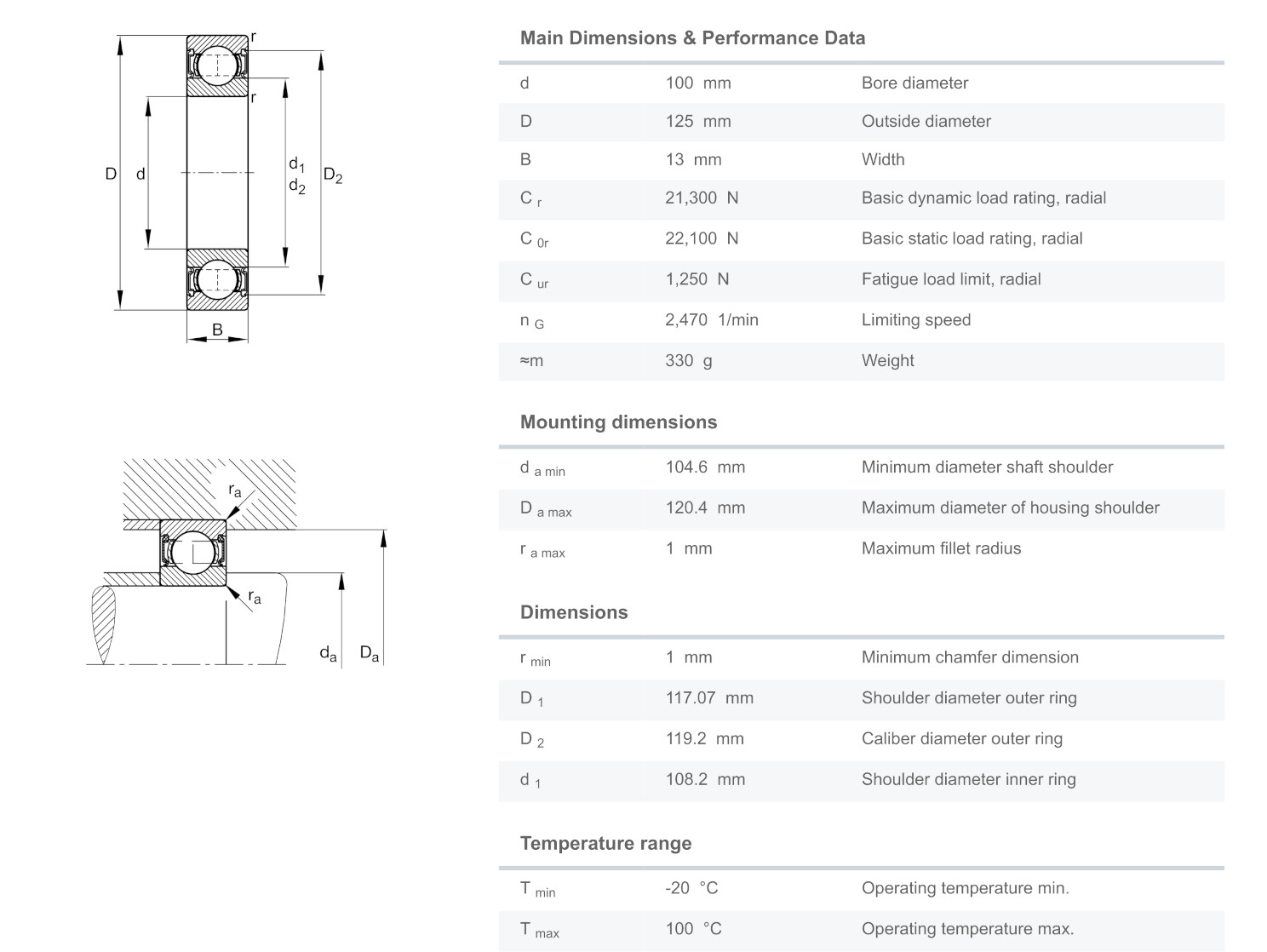 FAG 61820-2RSR-Y มีขนาดวงใน 100 มิล วงนอก 120 มิล หนา 13 มิล เป็นตลับลูกปืนเม็ดกลมร่องลึก ฝายางสองด้าน แถวเดียว รังทองเหลือง มีแรงเสียดทานต่ำ เสียงเงียบ สามารถรองรับความเร็วรอบสูง รองรับแรงทั้งแนวรัศมีและแนวแกน
