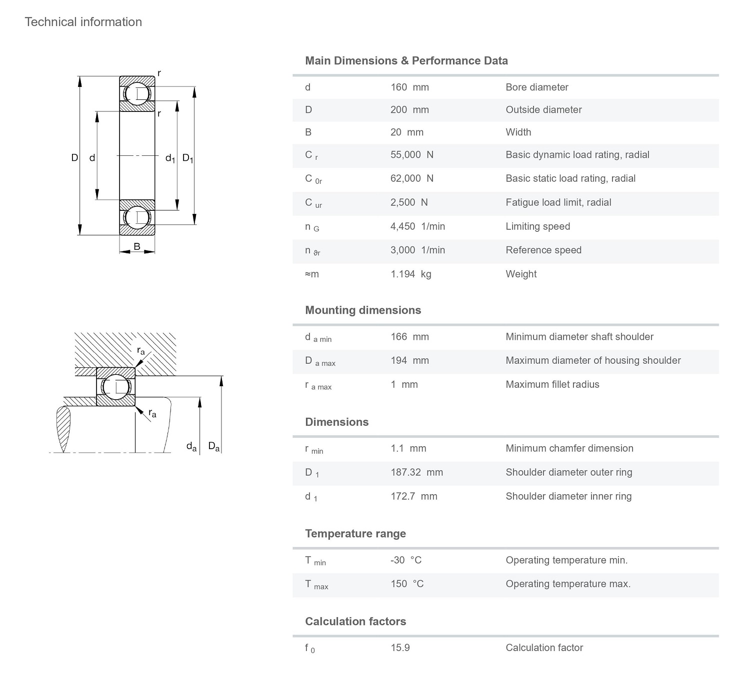 FAG 61832 มีขนาดวงใน 160 มิล วงนอก 200 มิล หนา 20 มิล เป็นตลับลูกปืนเม็ดกลมร่องลึก ไม่มีฝา แถวเดียว รังเหล็ก มีแรงเสียดทานต่ำ เสียงเงียบ สามารถรองรับความเร็วรอบสูง รองรับแรงทั้งแนวรัศมีและแนวแกน
