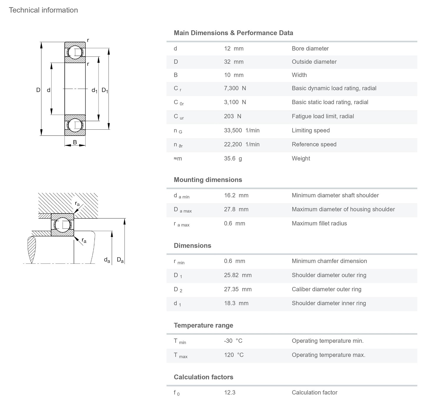 FAG 6201 มีขนาดวงใน 12 มิล วงนอก 32 มิล หนา 10 มิล เป็นตลับลูกปืนเม็ดกลมร่องลึก แถวเดียว ไม่มีฝา มีแรงเสียดทานต่ำ เสียงเงียบ รองรับความเร็วรอบสูง