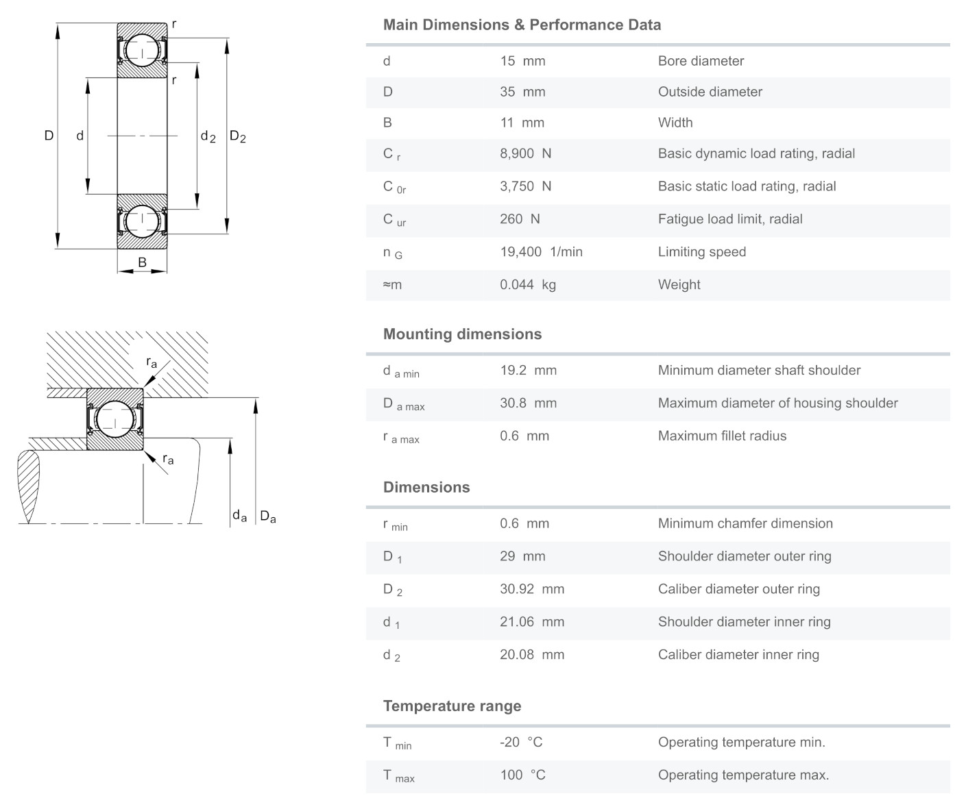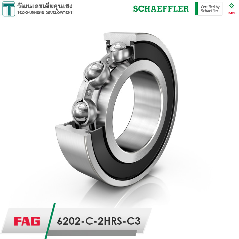 FAG 6202-C-2HRS-C3 มีขนาดวงใน 15 มิล วงนอก 35 มิล หนา 11 มิล เป็นตลับลูกปืนเม็ดกลมร่องลึก แถวเดียว ฝายางสองด้าน มีแรงเสียดทานต่ำ เสียงเงียบ รองรับความเร็วรอบสูง