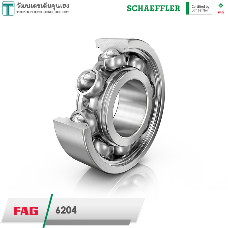 FAG 6204 มีขนาดวงใน 20 มิล วงนอก 47 มิล หนา 14 มิล เป็นตลับลูกปืนเม็ดกลมร่องลึก รังเหล็ก ไม่มีฝาปิด แถวเดียว มีแรงเสียดทานต่ำ เสียงเงียบ สามารถรองรับความเร็วรอบสูง รองรับแรงทั้งแนวรัศมีและแนวแกน