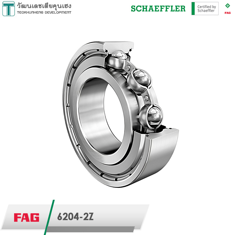 FAG 6204-2Z มีขนาดวงใน 20 มิล วงนอก 47 มิล หนา 14 มิล เป็นตลับลูกปืนเม็ดกลมร่องลึก รังเหล็ก มีฝาเหล็กปิดสองด้าน แถวเดียว มีแรงเสียดทานต่ำ เสียงเงียบ สามารถรองรับความเร็วรอบสูง รองรับแรงทั้งแนวรัศมีและแนวแกน