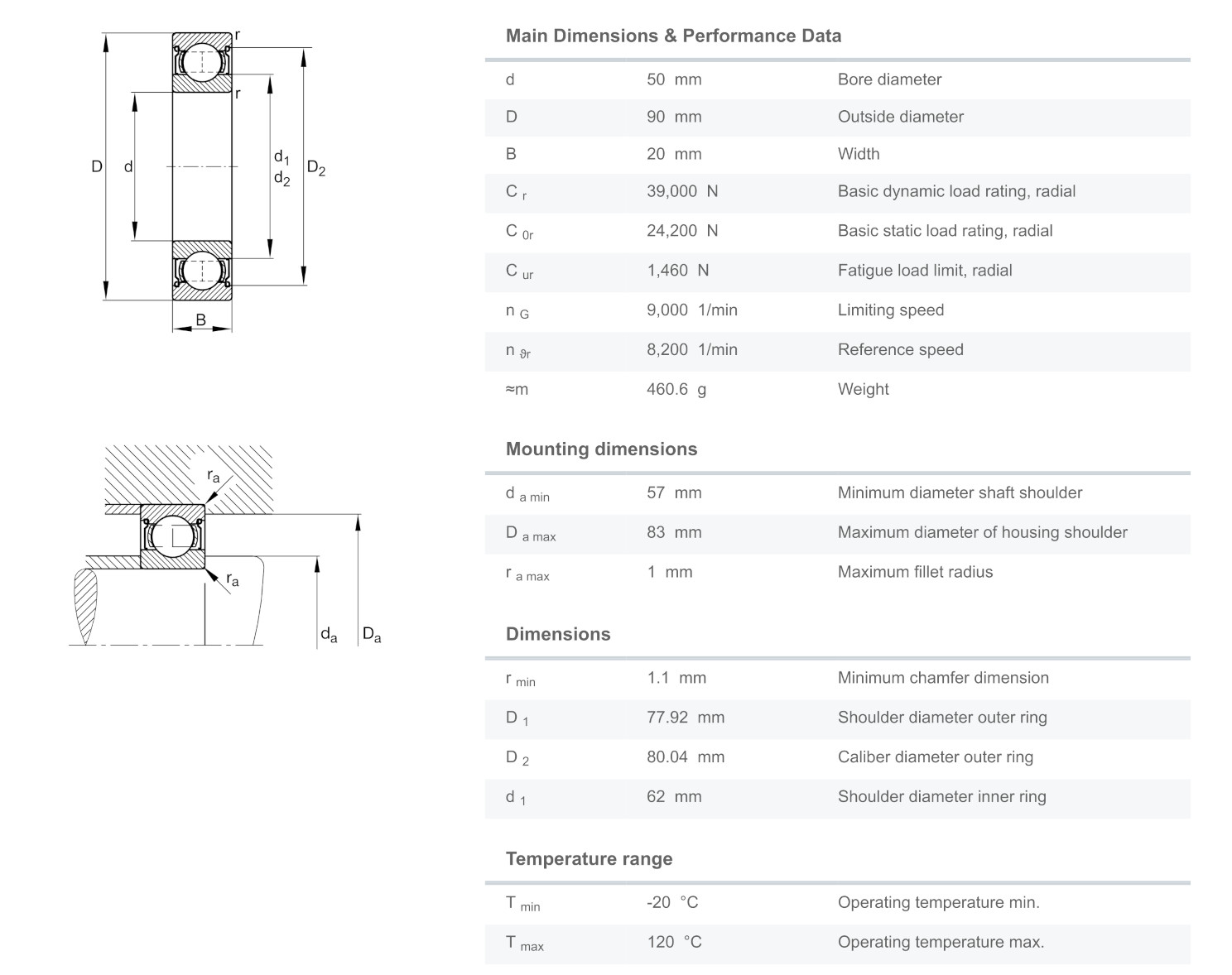 FAG 6210-2Z มีขนาดวงใน 50 มิล วงนอก 90 มิล หนา 20 มิล เป็นตลับลูกปืนเม็ดกลมร่องลึก ฝาเหล็กสองด้าน แถวเดียว มีแรงเสียดทานต่ำ เสียงเงียบ สามารถรองรับความเร็วรอบสูง รองรับแรงทั้งแนวรัศมีและแนวแกน