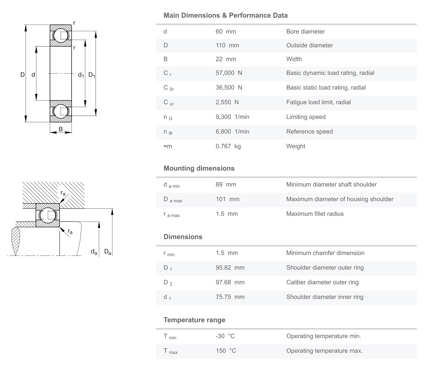 FAG 6212 มีขนาดวงใน 60 มิล วงนอก 110 มิล หนา 22 มิล เป็นตลับลูกปืนเม็ดกลมร่องลึก ไม่มีฝา แถวเดียว มีแรงเสียดทานต่ำ เสียงเงียบ สามารถรองรับความเร็วรอบสูง รองรับแรงทั้งแนวรัศมีและแนวแกน
