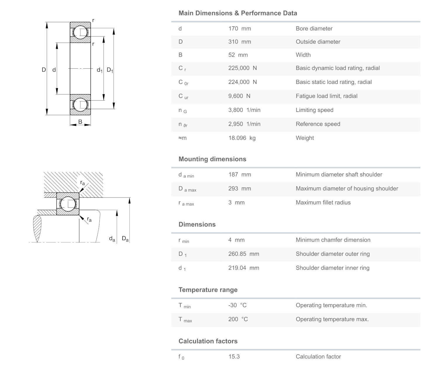 FAG 6234-M-C3 มีขนาดวงใน 170 มิล วงนอก 310 มิล หนา 52 มิล เป็นตลับลูกปืนเม็ดกลมร่องลึก ไม่มีฝาปิด แถวเดียว รังทองเหลือง มีแรงเสียดทานต่ำ เสียงเงียบ สามารถรองรับความเร็วรอบสูง รองรับแรงทั้งแนวรัศมีและแนวแกน