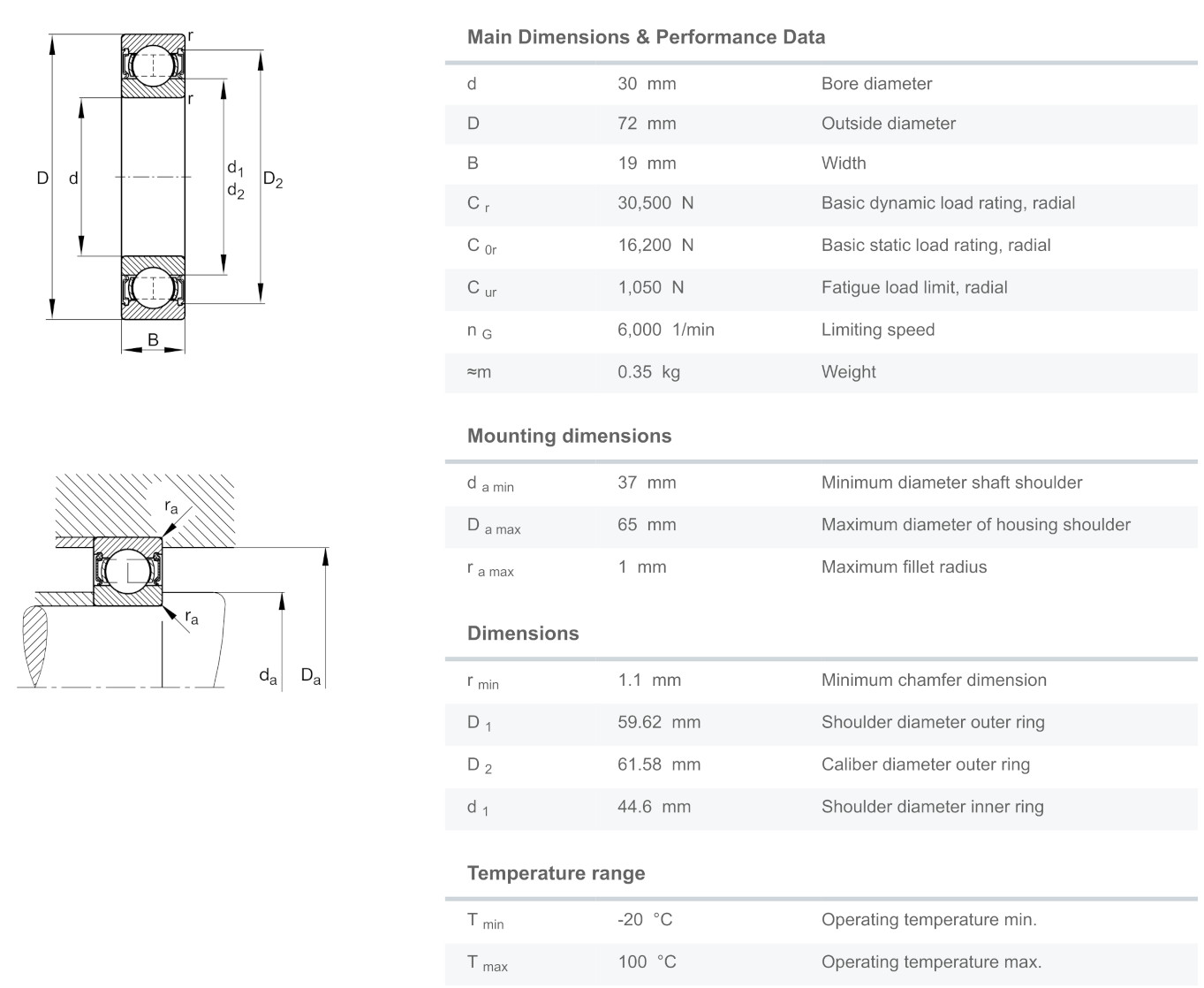 FAG 6306-2RSR-C3 มีขนาดวงใน 30 มิล วงนอก 72 มิล หนา 19 มิล เป็นตลับลูกปืนเม็ดกลมร่องลึก แถวเดียว ฝายางสองด้าน มีแรงเสียดทานต่ำ เสียงเงียบ รองรับความเร็วรอบสูง