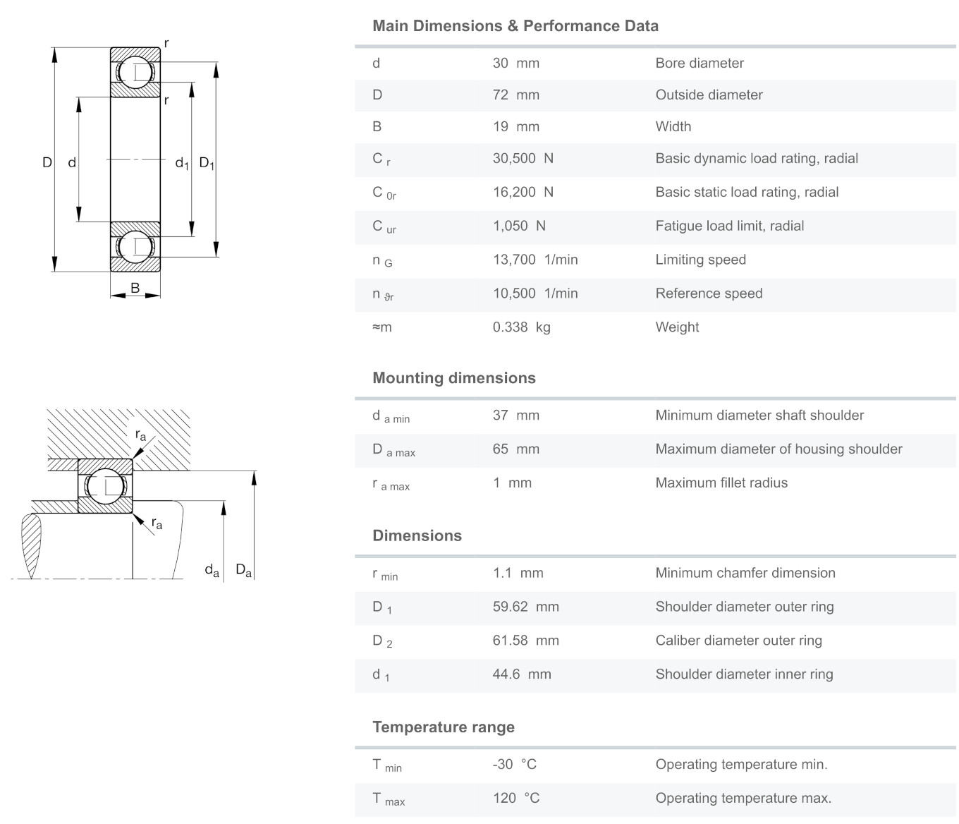 FAG 6306-C3 มีขนาดวงใน 30 มิล วงนอก 72 มิล หนา 19 มิล เป็นตลับลูกปืนเม็ดกลมร่องลึก แถวเดียว ไม่มีฝา มีแรงเสียดทานต่ำ เสียงเงียบ รองรับความเร็วรอบสูง