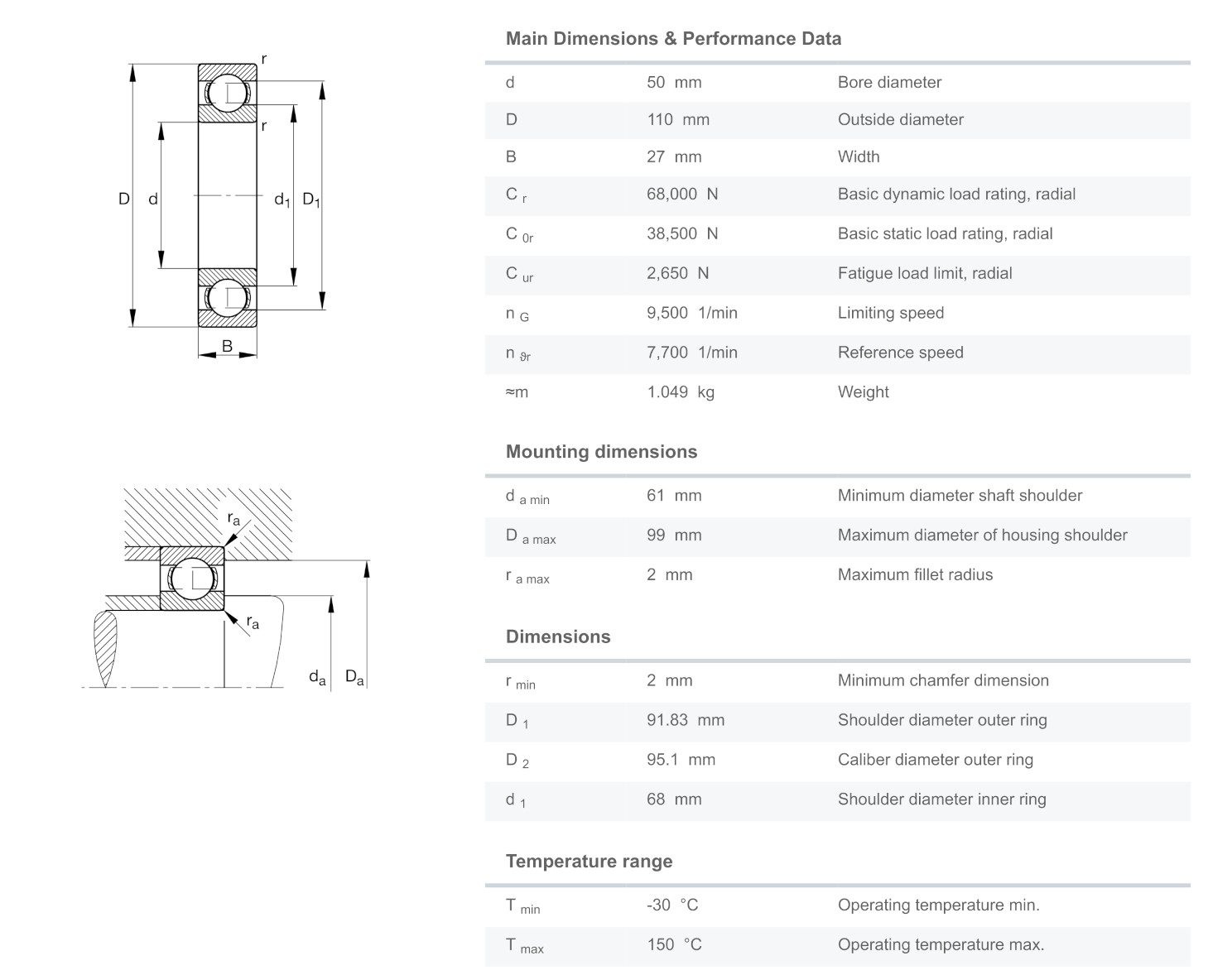 FAG 6310-C3 มีขนาดวงใน 50 มิล วงนอก 110 มิล หนา 27 มิล เป็นตลับลูกปืนเม็ดกลมร่องลึก ไม่มีฝา แถวเดียว มีแรงเสียดทานต่ำ เสียงเงียบ สามารถรองรับความเร็วรอบสูง รองรับแรงทั้งแนวรัศมีและแนวแกน