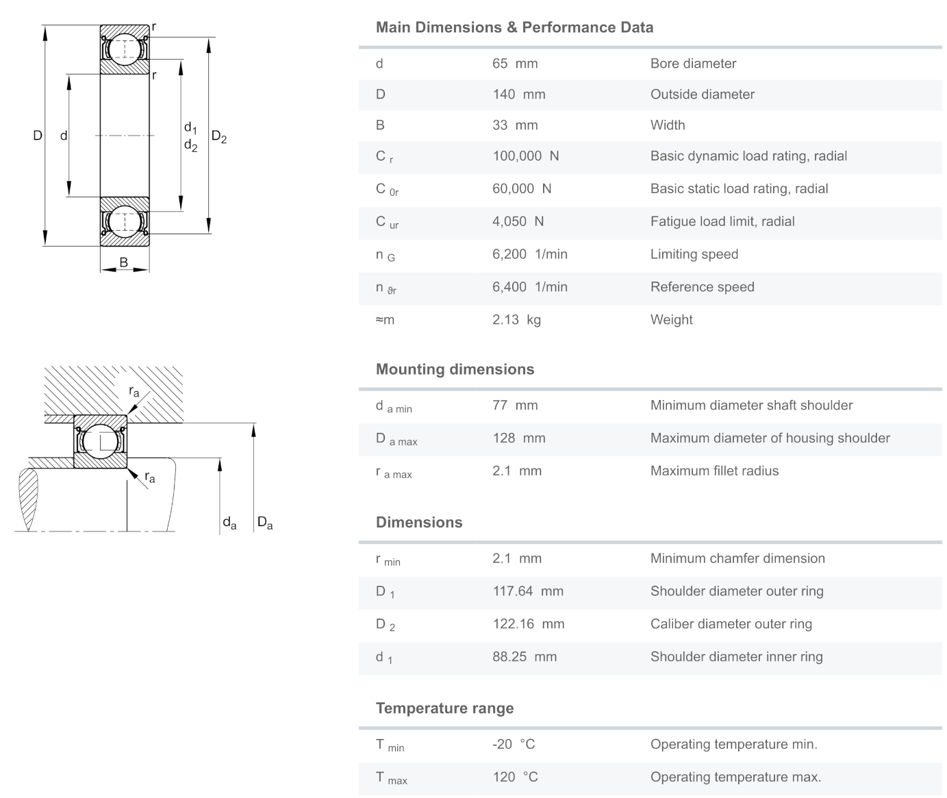 FAG 6313-2Z มีขนาดวงใน 65 มิล วงนอก 140 มิล หนา 33 มิล เป็นตลับลูกปืนเม็ดกลมร่องลึก ฝาเหล็กสองด้าน แถวเดียว มีแรงเสียดทานต่ำ เสียงเงียบ สามารถรองรับความเร็วรอบสูง รองรับแรงทั้งแนวรัศมีและแนวแกน