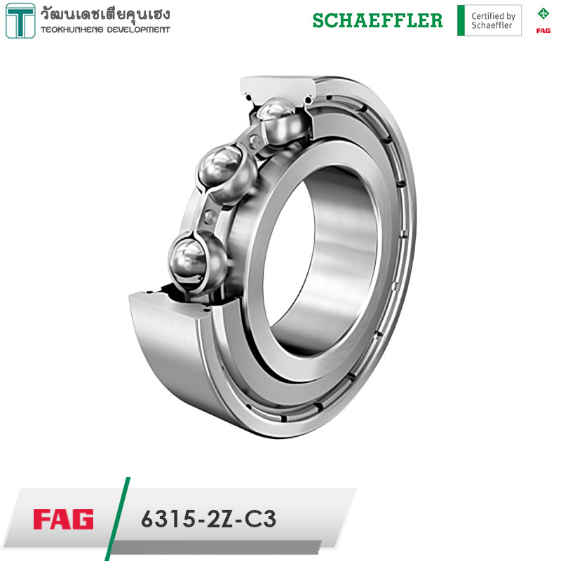 FAG 6315-2Z-C3 มีขนาดวงใน 75 มิล วงนอก 160 มิล หนา 37 มิล เป็นตลับลูกปืนเม็ดกลมร่องลึก ฝาเหล็กสองด้าน แถวเดียว รังเหล็ก มีแรงเสียดทานต่ำ เสียงเงียบ สามารถรองรับความเร็วรอบสูง รองรับแรงทั้งแนวรัศมีและแนวแกน