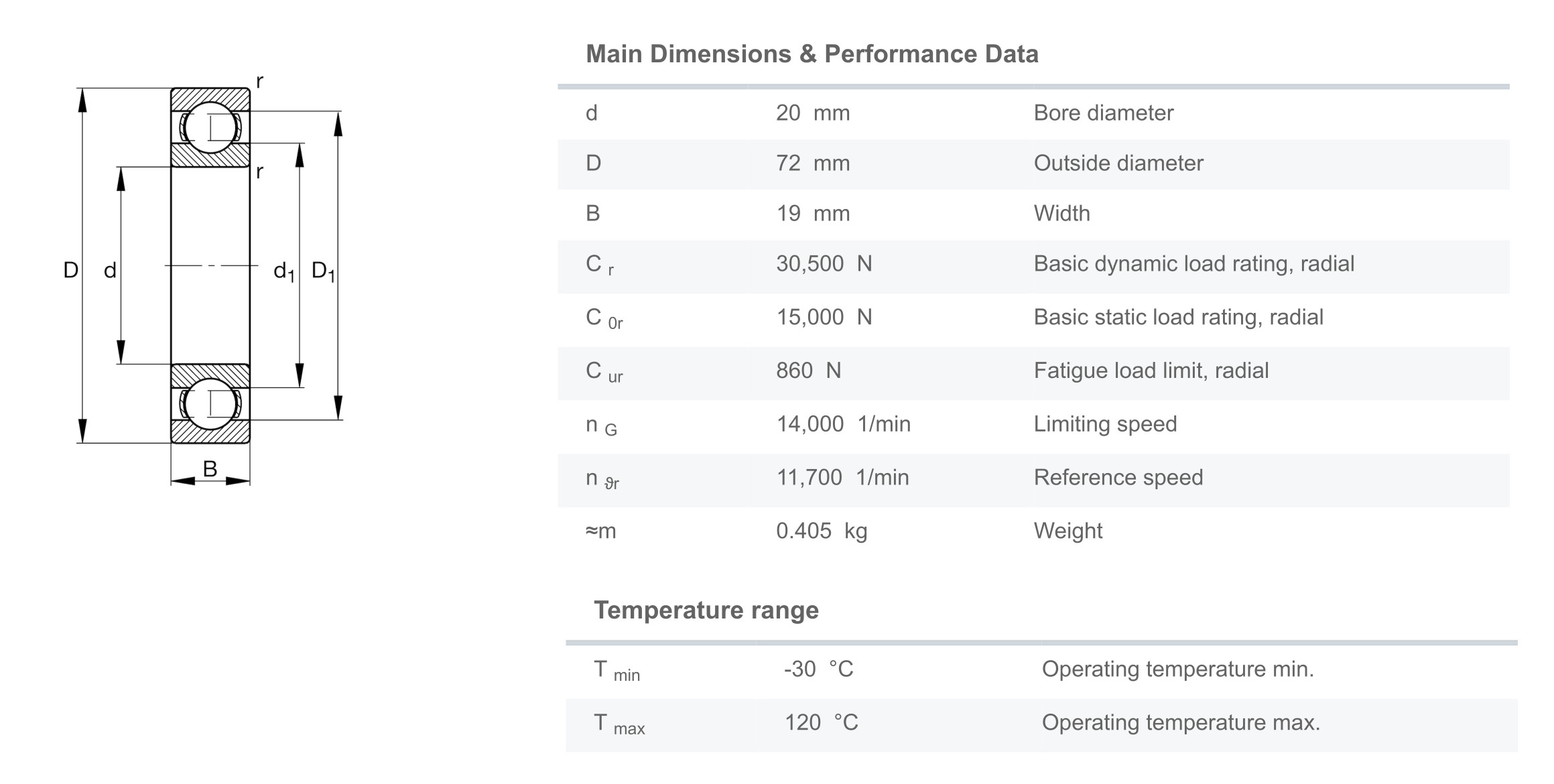 FAG 6404-A-C3 มีขนาดวงใน 20 มิล วงนอก 72 มิล หนา 19 มิล เป็นตลับลูกปืนเม็ดกลมร่องลึก รังเหล็ก ไม่มีฝา แถวเดียว มีแรงเสียดทานต่ำ เสียงเงียบ สามารถรองรับความเร็วรอบสูง รองรับแรงทั้งแนวรัศมีและแนวแกน