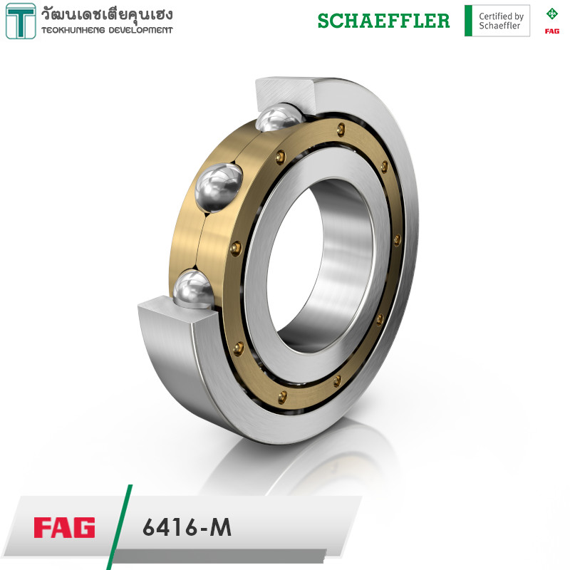 FAG 6416-M มีขนาดวงใน 80 มิล วงนอก 200 มิล หนา 48 มิล เป็นตลับลูกปืนเม็ดกลมร่องลึก รังทองเหลือง ไม่มีฝา แถวเดียว มีแรงเสียดทานต่ำ เสียงเงียบ สามารถรองรับความเร็วรอบสูง รองรับแรงทั้งแนวรัศมีและแนวแกน