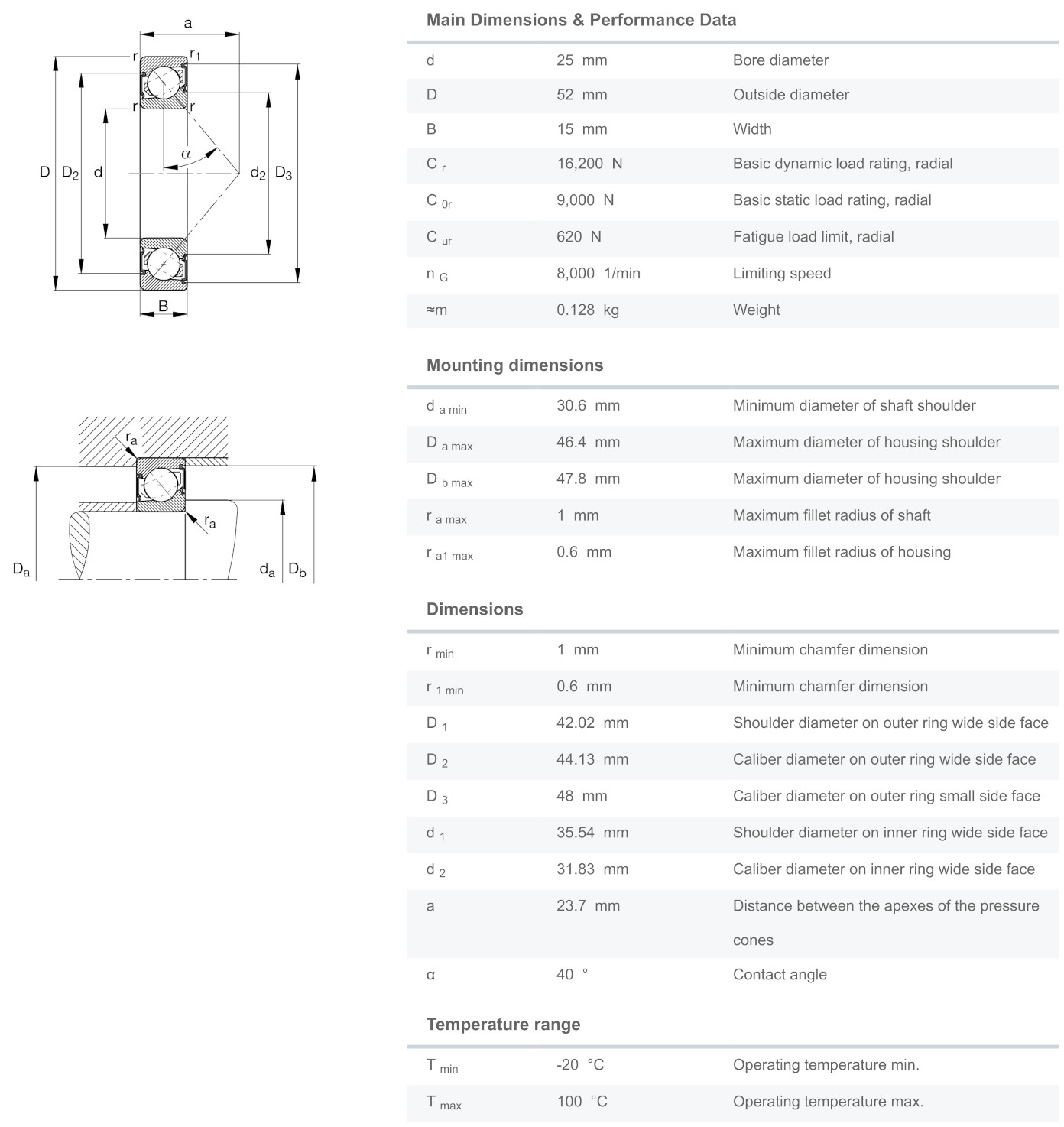 FAG 7205-B-XL-2RS-TVP มีขนาดวงใน 25 มิล วงนอก 52 มิล หนา 15 มิล เป็นตลับลูกปืนเม็ดกลมแบบมุมสัมผัส 40 องศา แถวเดียว ฝายางสองด้าน รังโพลีเอไมด์ รองรับแรงโหลดได้ทั้งในแนวรัศมีและแนวแกนพร้อมๆ กันได้ดี