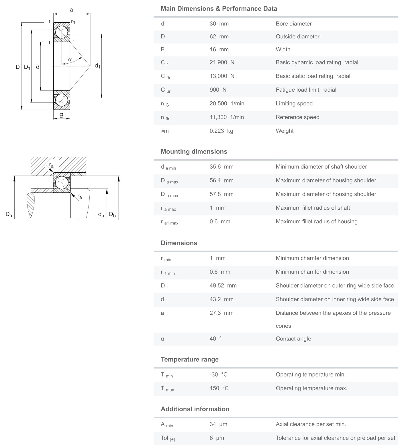 FAG 7206-B-XL-MP-UA มีขนาดวงใน 30 มิล วงนอก 62 มิล หนา 16 มิล เป็นตลับลูกปืนเม็ดกลมแบบมุมสัมผัส 40 องศา แถวเดียว ไม่มีฝาปิด รังทองเหลือง เหมาะสำหรับติดตั้งแบบประกบคู่ รองรับแรงโหลดได้ทั้งในแนวรัศมีและแนวแกนพร้อมๆ กันได้ดี