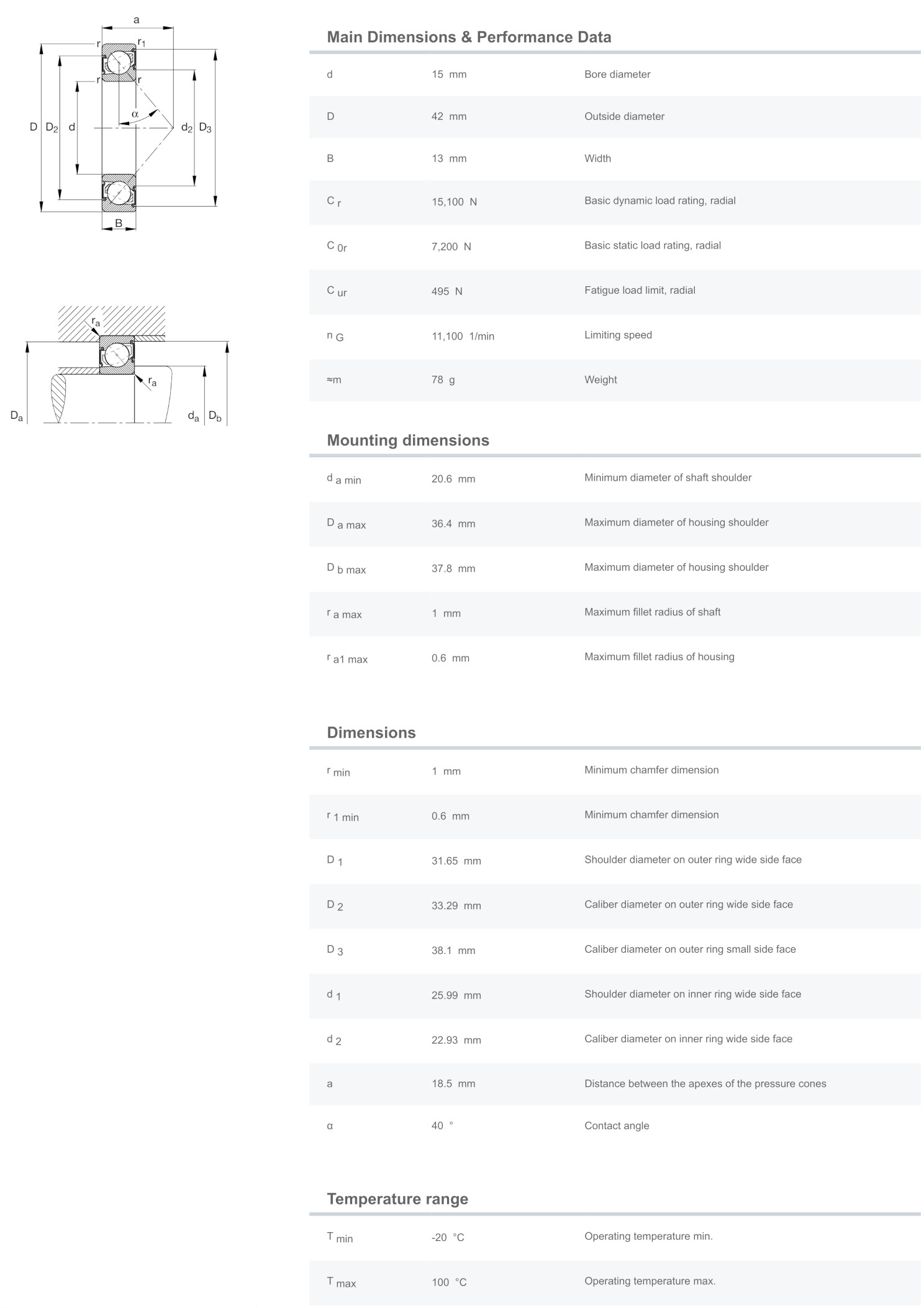 FAG 7302-B-XL-2RS-TVP มีขนาดวงใน 15 มิล วงนอก 42 มิล หนา 13 มิล เป็นตลับลูกปืนเม็ดกลมแบบมุมสัมผัส 40 องศา แถวเดียว มีฝายางสองด้าน รังโพลีเอไมด์ รองรับแรงโหลดได้ทั้งในแนวรัศมีและแนวแกนพร้อมๆ กันได้ดี