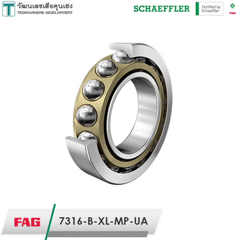 FAG 7316-B-XL-MP-UA มีขนาดวงใน 80 มิล วงนอก 170 มิล หนา 39 มิล เป็นตลับลูกปืนเม็ดกลมแบบมุมสัมผัส 40 องศา แถวเดียว ไม่มีฝาปิด รังทองเหลือง รุ่นสำหรับประกบคู่ รองรับแรงโหลดได้ทั้งในแนวรัศมีและแนวแกนพร้อมๆ กันได้ดี