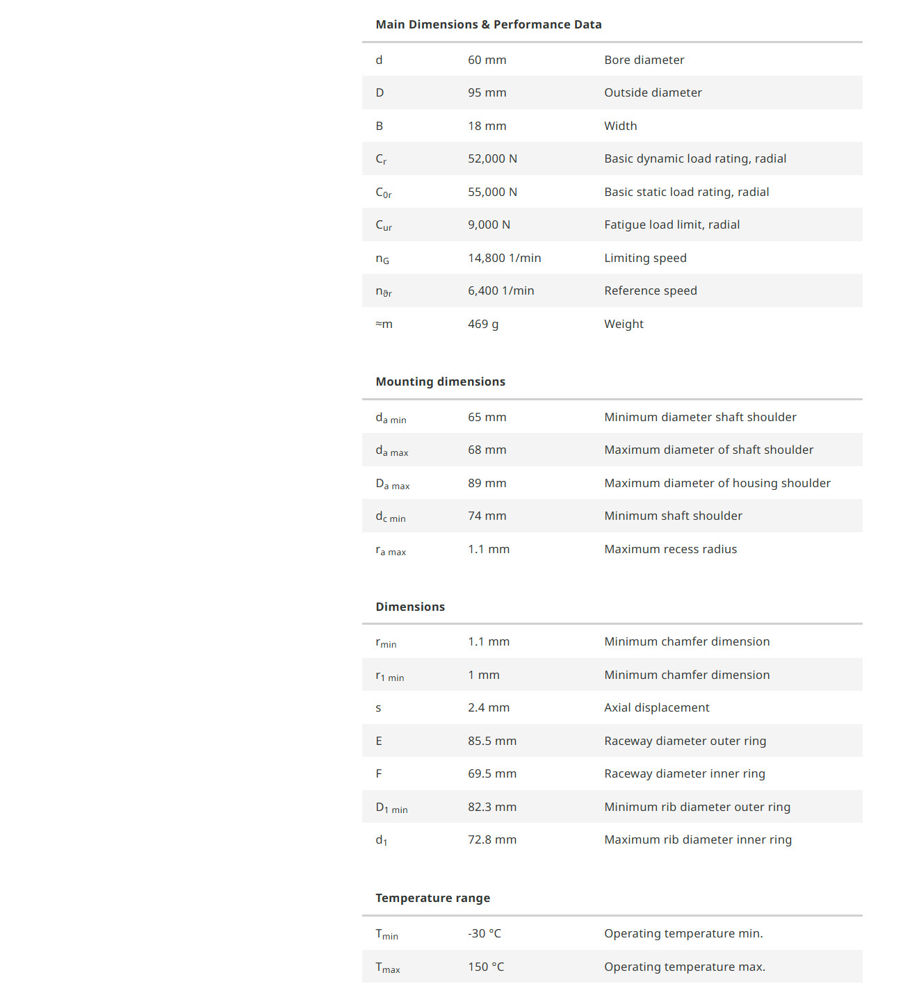 FAG NJ1012-XL-M1 มีขนาดวงใน 60 มิล วงนอก 95 มิล หนา 18 มิล เป็นตลับลูกปืนเม็ดทรงกระบอก แกนในสามารถถอดหลุดออกได้ด้านเดียว ทำให้สะดวกต่อการติดตั้ง รองรับแรงโหลดได้สูงมาก