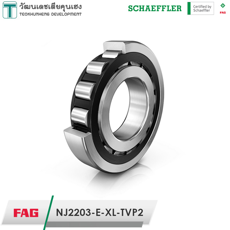 FAG NJ2203-E-XL-TVP2 มีขนาดวงใน 17 มิล วงนอก 40 มิล หนา 16 มิล เป็นตลับลูกปืนเม็ดทรงกระบอกแถวเดียว NJ Design มีลักษณะแกนในที่สามารถถอดหลุดออกได้ 1 ด้าน ทำให้สะดวกต่อการติดตั้ง รองรับแรงโหลดได้สูงมาก