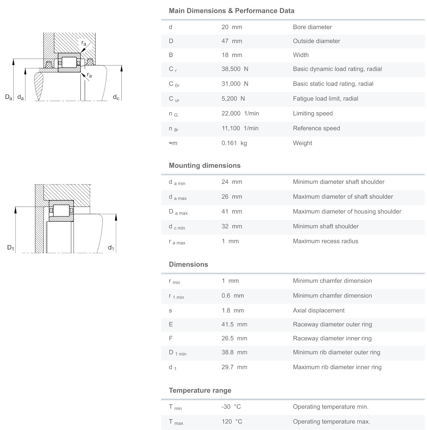 FAG NJ2204-E-XL-TVP2 มีขนาดวงใน 20 มิล วงนอก 47 มิล หนา 18 มิล เป็นตลับลูกปืนเม็ดทรงกระบอกแถวเดียว NJ Design มีลักษณะแกนในที่สามารถถอดหลุดออกได้ 1 ด้าน ทำให้สะดวกต่อการติดตั้ง รองรับแรงโหลดได้สูงมาก