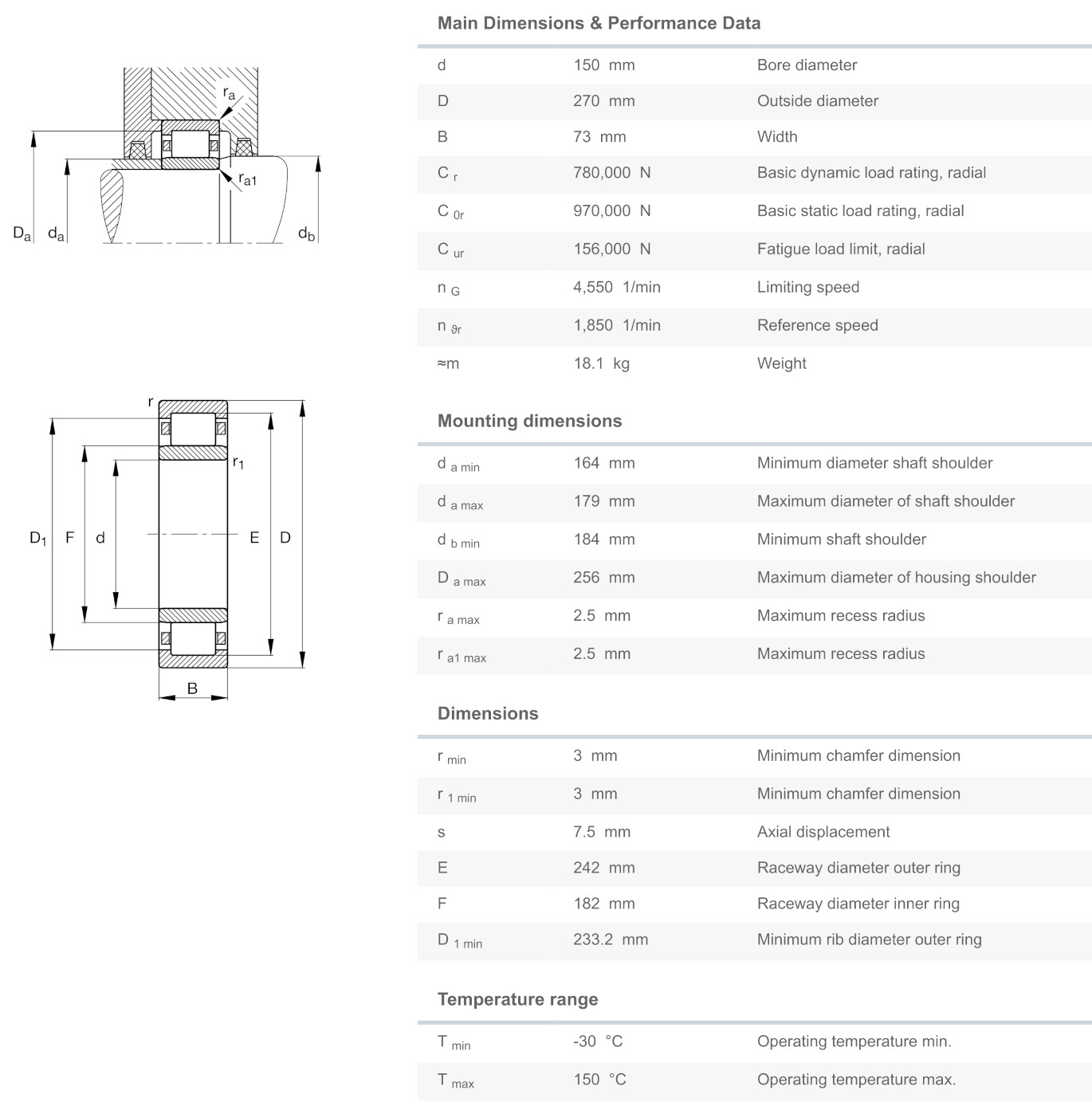 FAG NU2230-E-M1-C3 มีขนาดวงใน 150 มิล วงนอก 270 มิล หนา 73 มิล เป็นตลับลูกปืนเม็ดทรงกระบอก NU แกนในสามารถถอดหลุดออกได้ทั้งสองด้าน ทำให้สะดวกต่อการติดตั้ง รองรับแรงโหลดได้สูงมาก